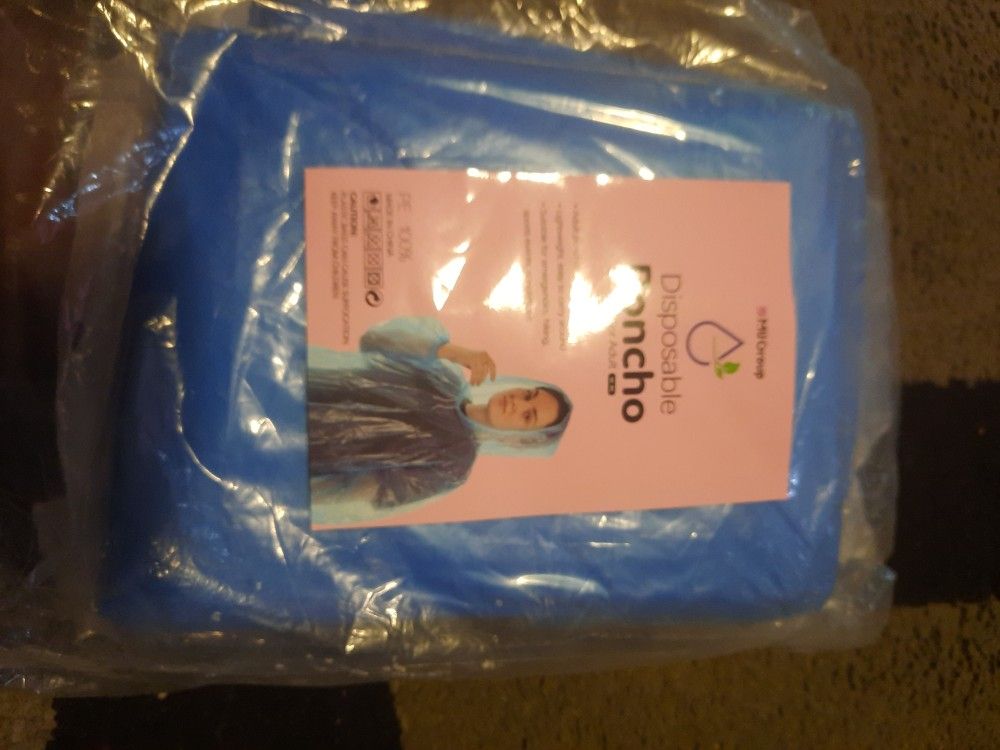 Disposable ponchos for men, women big kiddos 10 pics or sold individually for $1.25. & 10 pack for$10.00 or best offer on 10 pack. Reasonable.