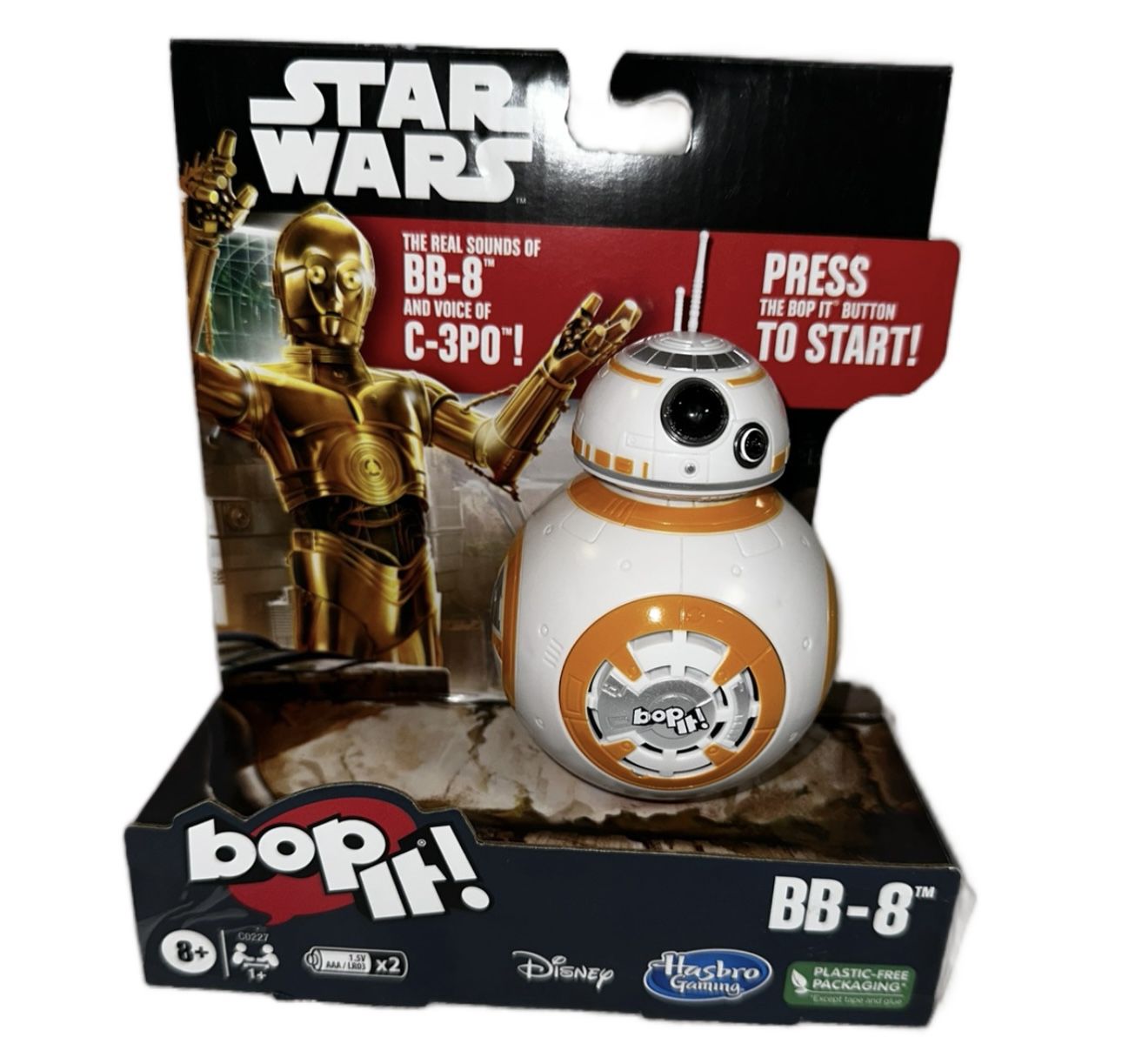 The Bop It! Game Star Wars BB-8 Edition by Hasbro Gaming is an electronic toy figure that brings the popular game to life with a touch of Star Wars charm. The multicolored BB-8 droid character family features a standard size and is a perfect gift for kids who love both gaming and the iconic sci-fi franchise. This interactive toy allows kids to follow instructions and test their memory skills while having fun with a beloved Star Wars character.