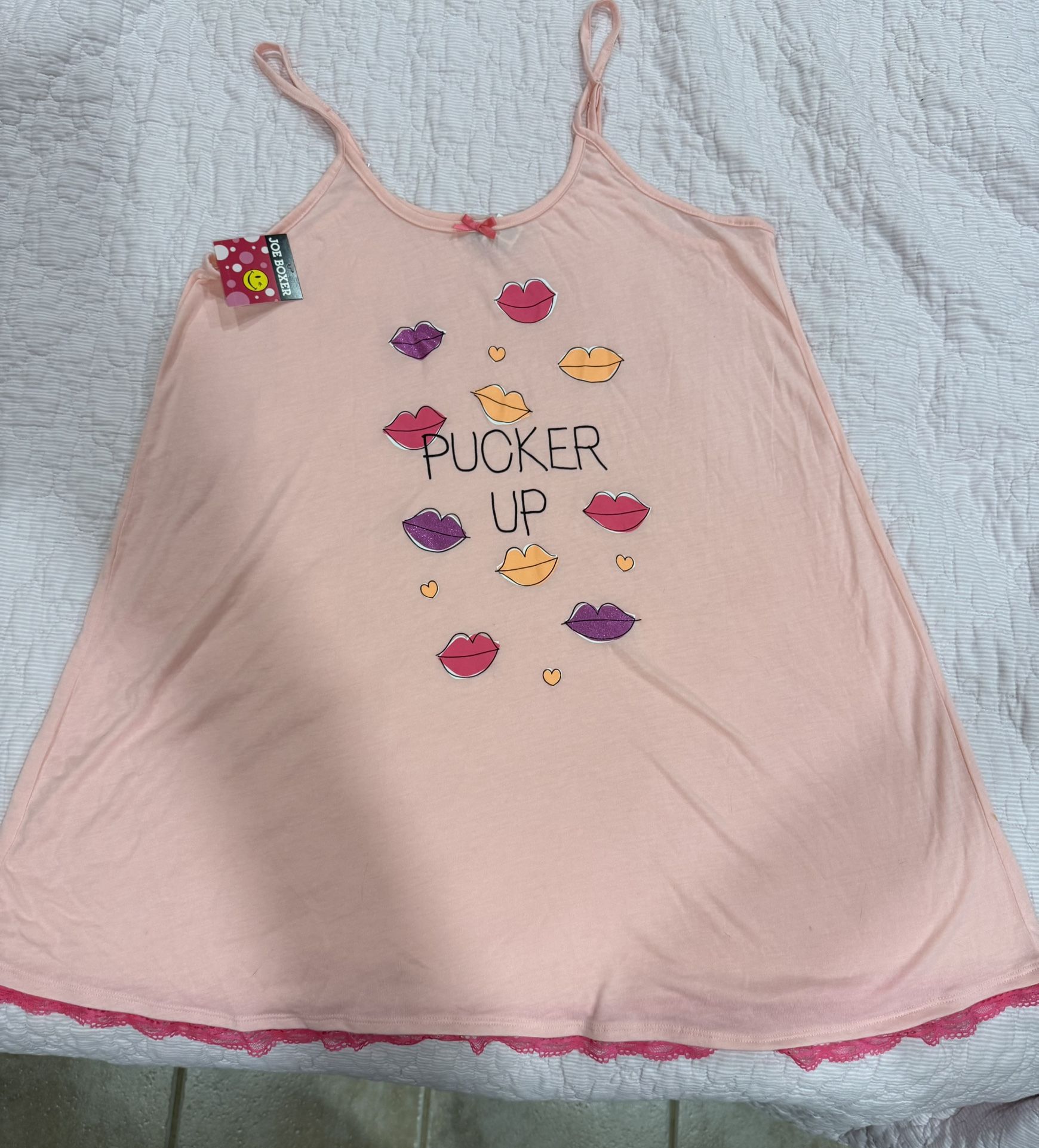 Strappy Chemise Nightgown Lips Pucker Up design on front 65% Polyester 35% Rayon Size Large Brand New with Tags