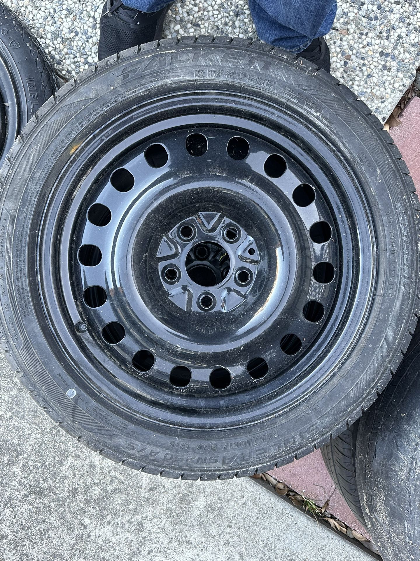 Used Reliable Falken Ziex ZE914 SN25 tires on black steel wheels. Size is 205/50R17 93V M+S. Tread has good life left. Great for a spare set or winter driving. Got one only.