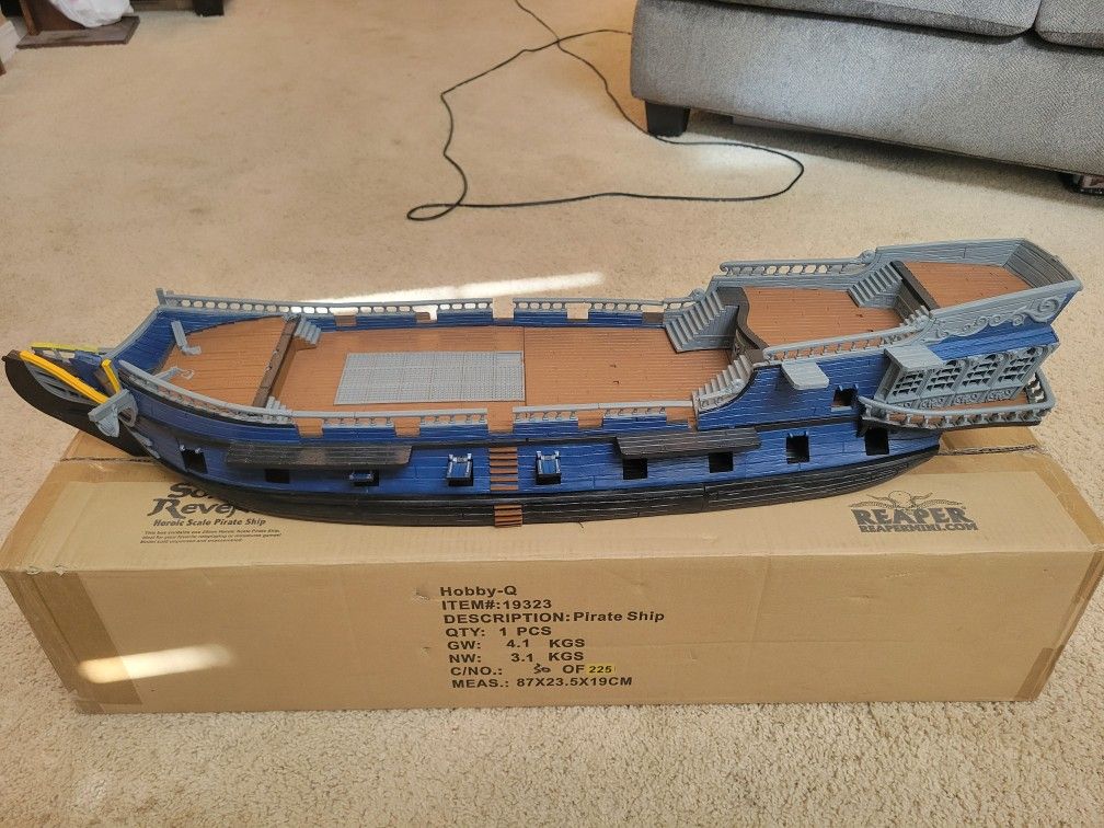Complete sophies' revenge, partially painted. The wife announced she wants a divorce, so now I have to downsize everything of value to me. Cannons have been painted and will include paints to go with it so you can have matching paint. Wish I could have finished her. Maybe someone else can and love her. Rest of the parts are in the box. Message me with questions. Extra cannons included.