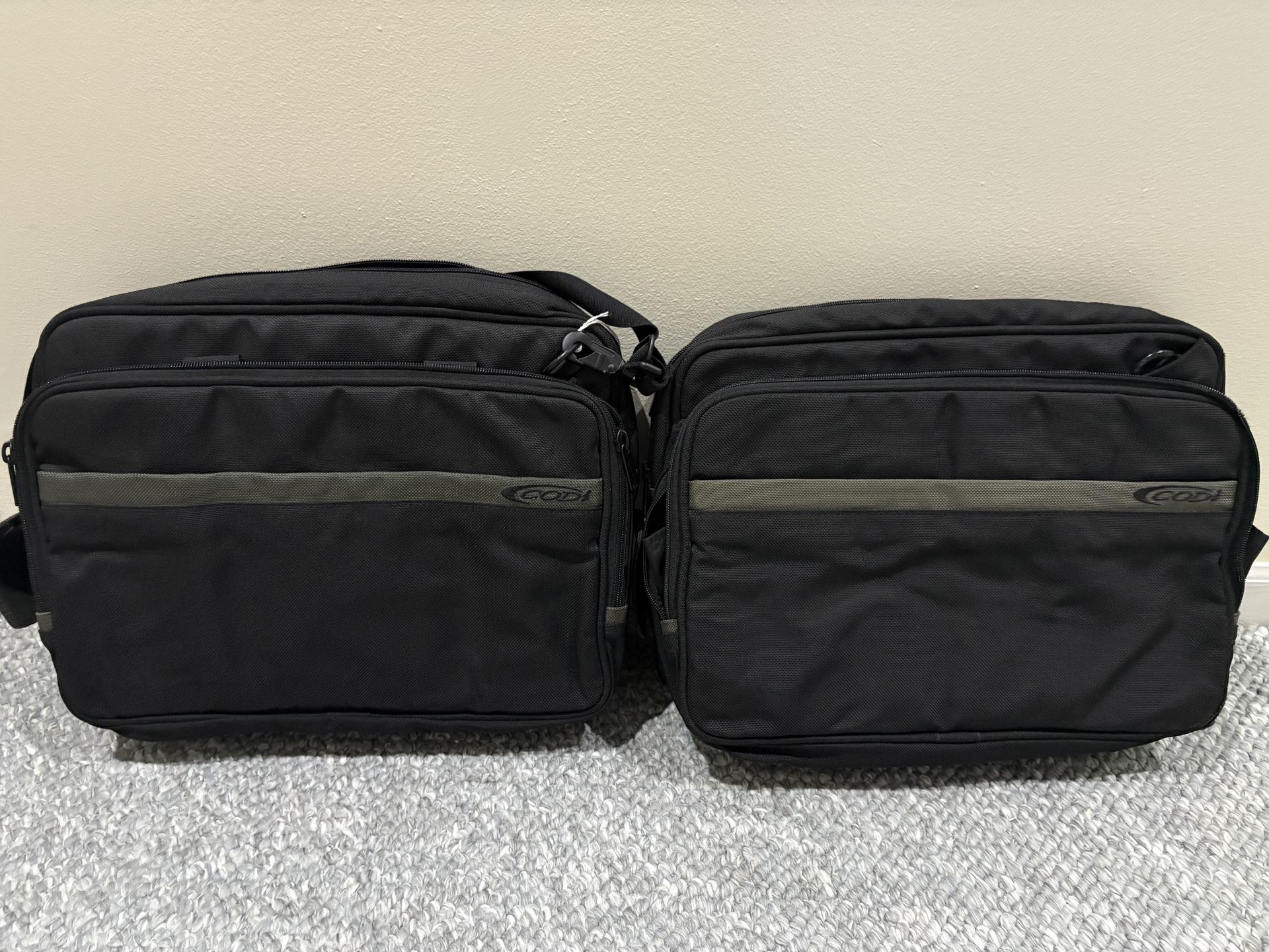Two Codi Laptop bags - hardly used, like new condition Two Dell laptop bags - used in good condition. $10 for each Padded, partitions luggage strap for fixing the bag on the trolley of a luggage. Front zippered compartment with organizational pockets for keys, cell phone and other items. Back compartment for documents.