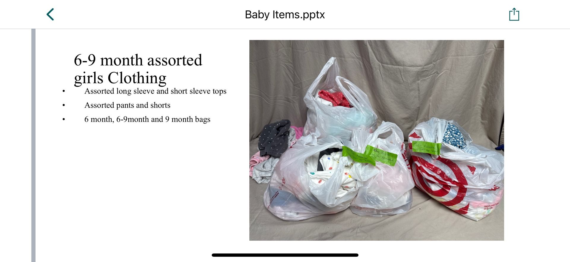 •Assorted long sleeve and short sleeve tops •Assorted pants and shorts •6 month, 6-9month and 9 month bags