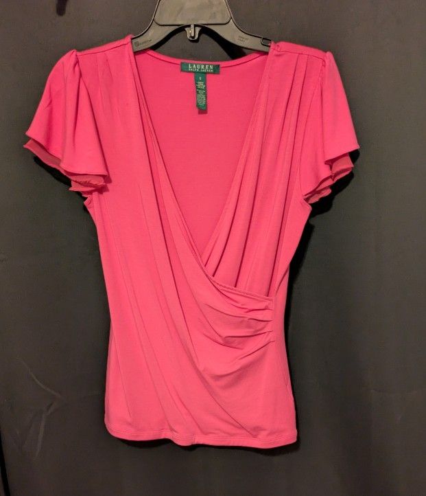 Ralph Lauren Pink Draped V Neck Top Size Small
