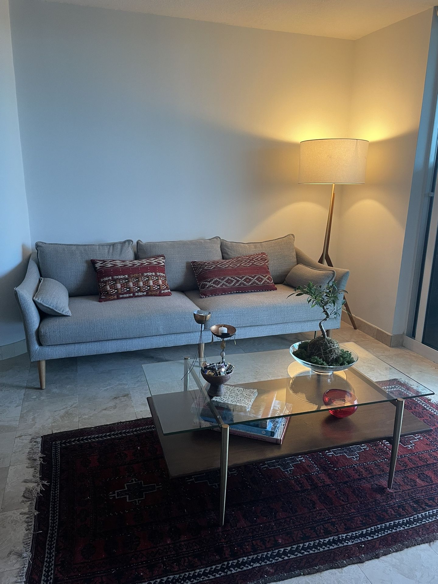 Grey sofa with wood legs from West Elm in very good condition - 800 Coffee table glass with steel accents and wood - 300 $1000 for both Cash and local pickup only