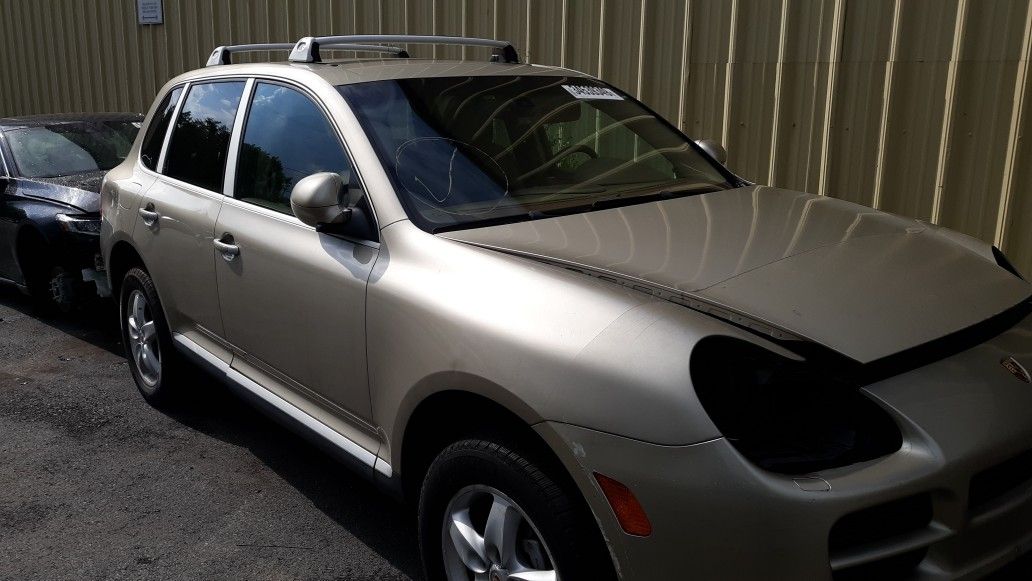 2004 Porsche cayenne for parts Doors Driver airbag Radio Driver seat Tail light Tailgate Engine v8 Transmission Complete cooling system (fan ,radiator,condenser) Differential Fender Headlight (R) Tires/wheels Drive shaft K frame Front shocks Axles Transfer case Hood