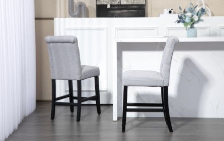 Brand new Set of 2 Counter Height Bar Stools Tufted LINEN barstools Mid Century Wood