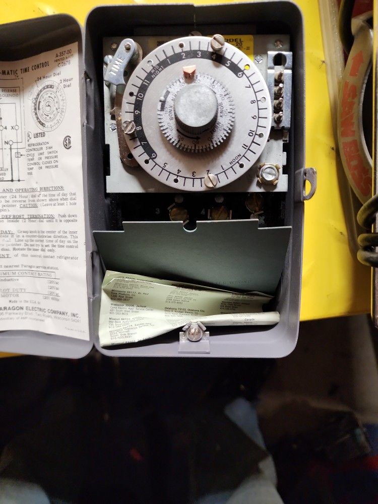 Description – Designed for commercial freezers and refrigerators, Paragon commercial defrost controls provide automatic defrost capability. They accommodate various types of defrost systems including electric defrost heaters, hot gas and compressor off cycle. Time initiated, temperature or pressure terminated High-amp switch contacts, 40 amps, 2 hp Positive slider bar switch design, assures positive electrical contact and wipes the contact surface of contaminates Designed for defrost termination using an external temperature or pressure device Safety back-up- mechanical time-driven defrost termination Heavy-duty synchronous design drive motor Choice of three contact arrangements Adjustable frequency of defrost initiation from 1 to 6 cycles per day with a minimum of 4 hours between successive operations Adjustable back-up defrost termination from 4 to 110 minutes in 2 minute increments Enclosure construction of heavy-duty steel with knockouts on the bottom, back and sides. Hasp and staple for padlock is part of the enclosure Time initiated, time terminated High-amp switch contacts, 40 amps, 2 hp Positive slider bar switch design, assures positive electrical contact and wipes the contact surface of contaminates Choice of three contact arrangements Heavy-duty synchronous design drive motor Adjustable frequency of defrost initiation from 1 to 6 cycles per day with a minimum of 4 hours between successive operations Adjustable defrost cycle from 4 to 110 minutes in 2 minute increments Accuracy of defrost duration is +/- 2 minutes Enclosure construction of heavy-duty steel with knockouts on the bottom, back and sides. Hasp and staple for padlock is part of the enclosure Hide Description