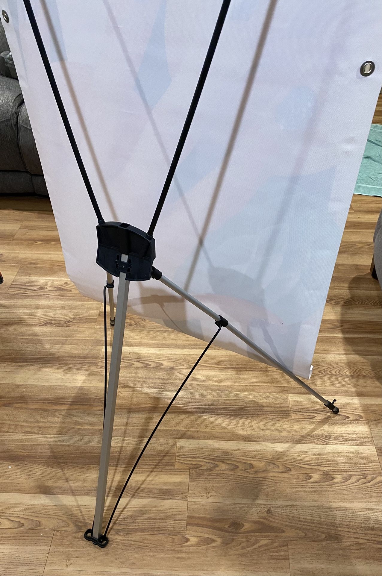 Great for events to display your business, easy to set up and take down. Comes with a bag for all the parts including room for the sign rolled up for easy transporting. You would just need to get a vinyl sign to replace mine (unless you sell the same product I did). Sign size it 30”x71”
