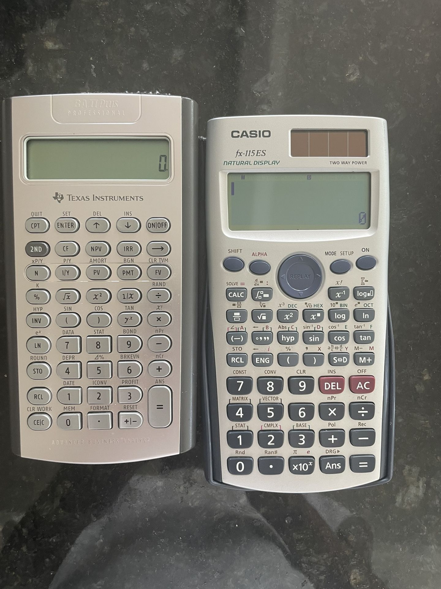 TI BI 2 Plus Business analyst $40 Casio regular calculator $10