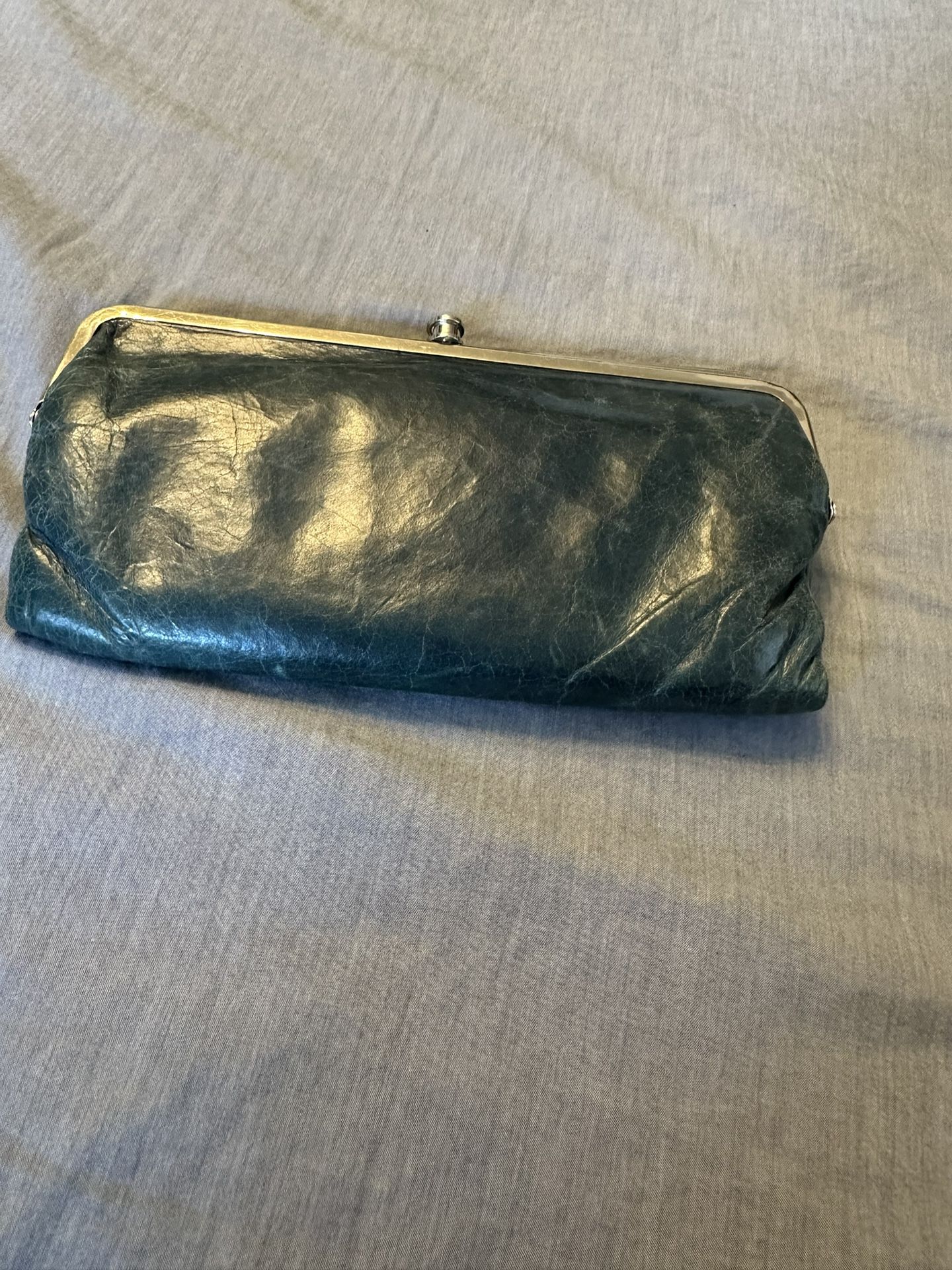 Soft, buttery and beautiful blue wallet in excellent condition. Currently sells for $148 plus tax. Soft, textured leather in a two-sided design makes this frame clutch perfectly proportioned for traveling light. • Snap closure on both frames; single magnetic closure at center • Nine interior card slots; ID window • Floral lining • Leather • Imported • Item # 150175