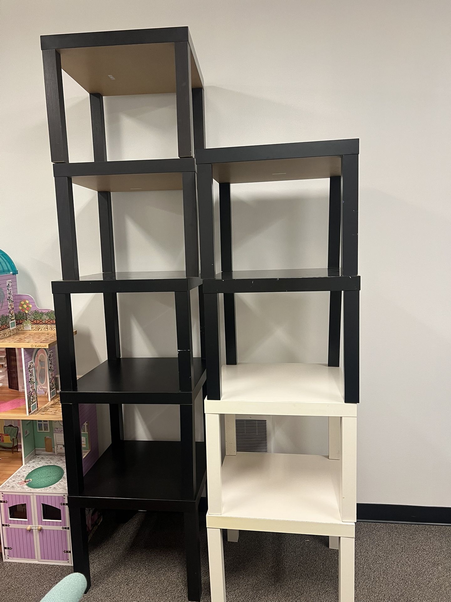 Side tables 22” x 22” square stand 17 3/4 tall 7 black/brown, 2 white $16.99 new Selling for $8 each $45 for all