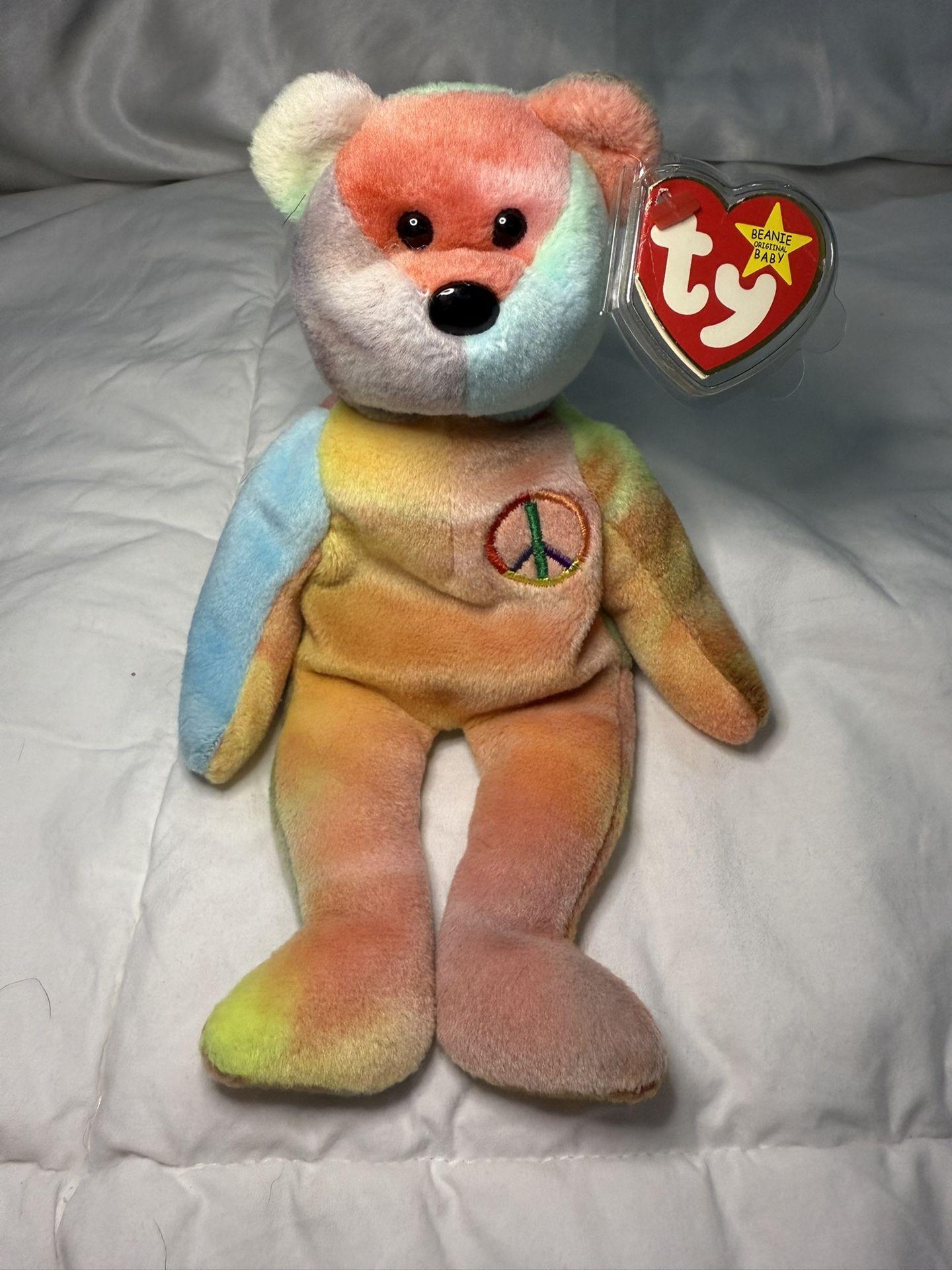 🔥 Vintage Ty Beanie Baby PEACE BEAR – 1996 PVC Pellets, Rare Errors, Excellent!