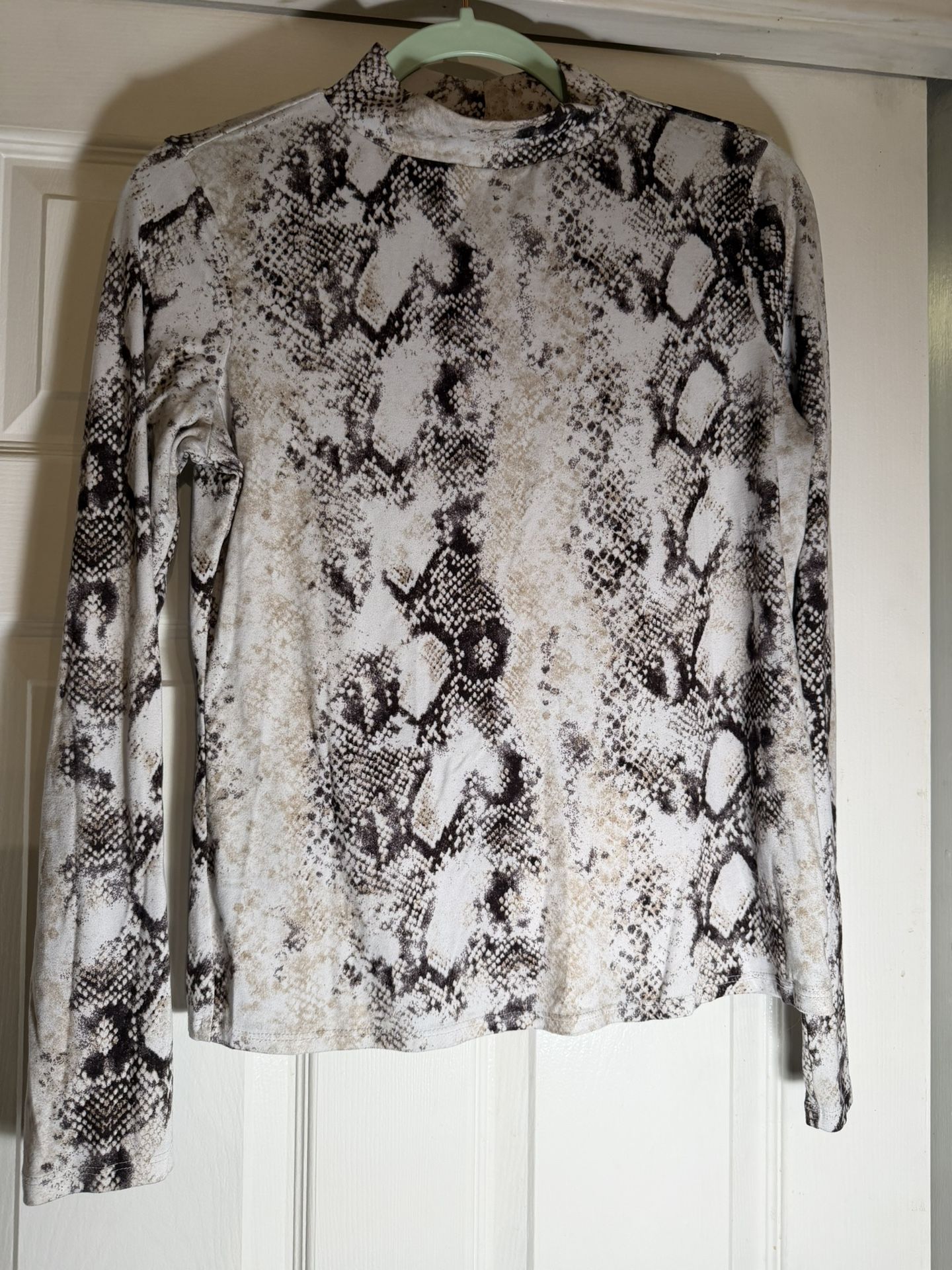 Long sleeve Mock Turtleneck Animal Print Blouse