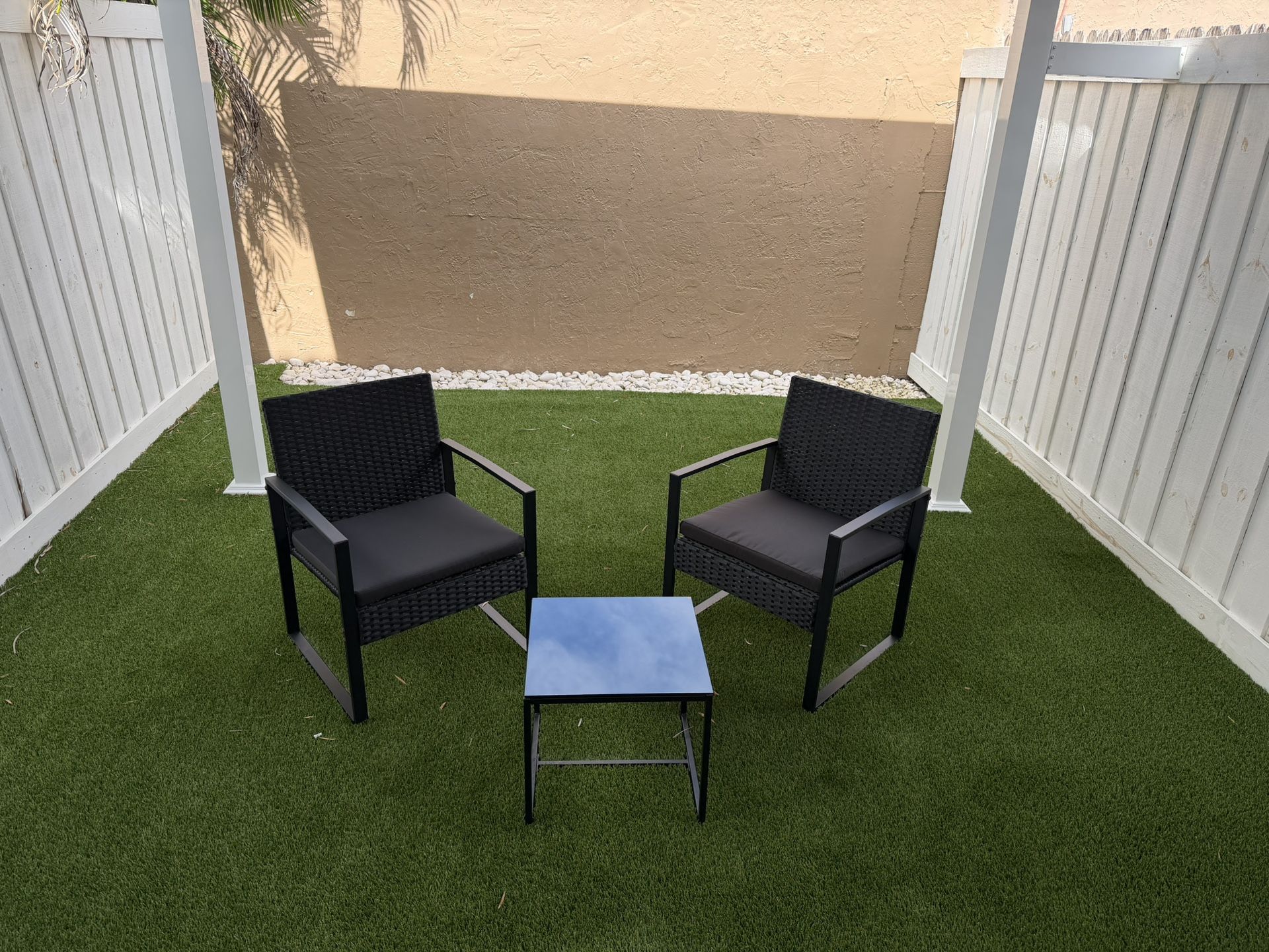 3 piece outdoor patio wicker furniture set (black) never used, 5 months old