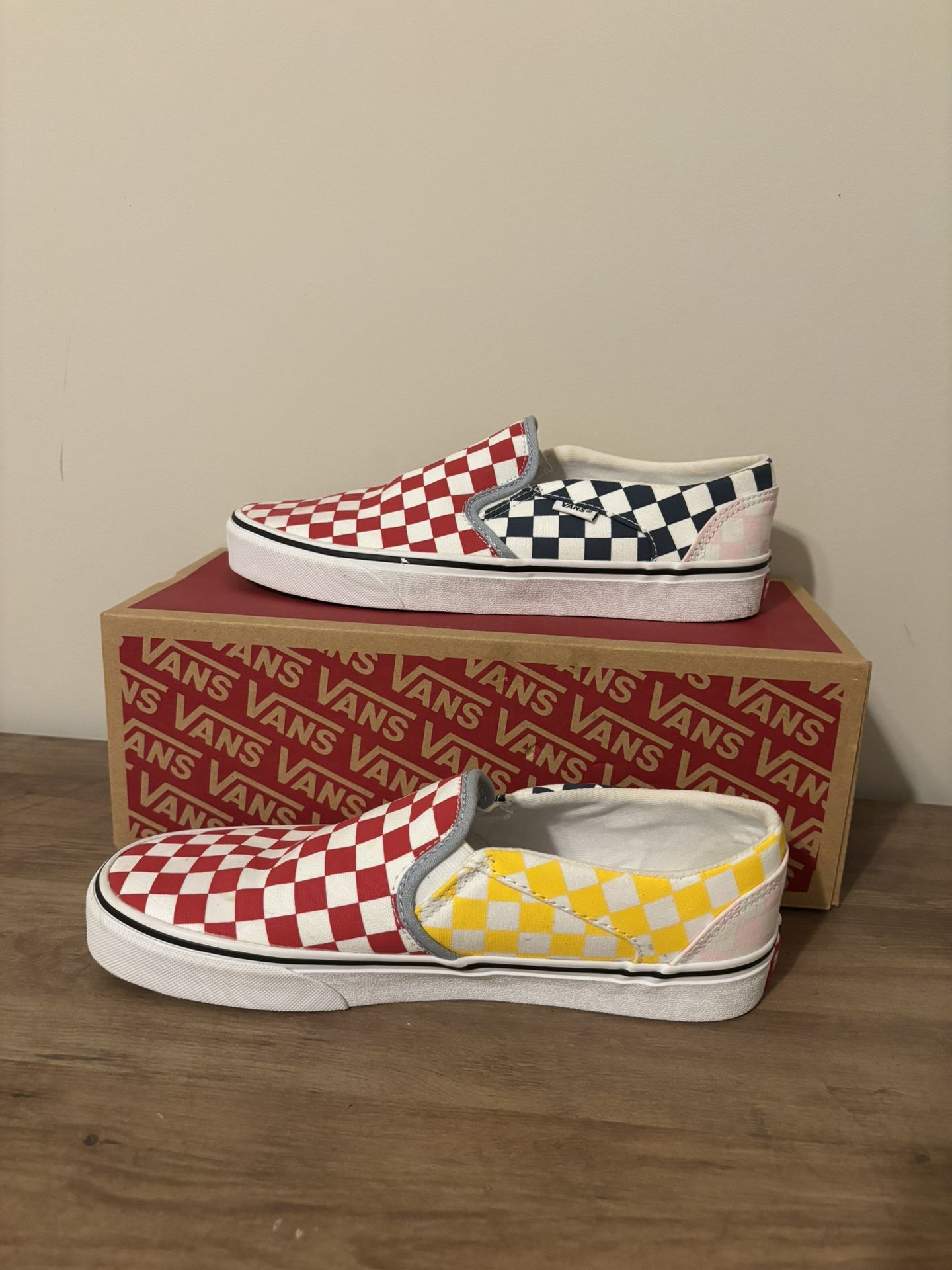White and red Vans slip-on