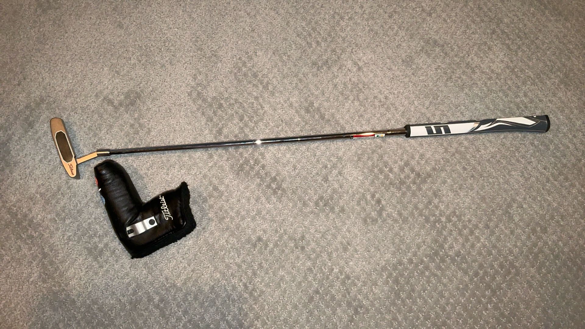 Scotty Cameron Studio Style Newport 2 Putter with 303/GSS insert. Original shaft, shaftband. New SuperStroke Pistol Tour grip. Original headcover and divot tool are included. View photos- putter is in “mint” condition. Well cared for. Has been siting in closet, now looking to sell. Putter is right handed and measures 35” length, 4 degree loft, 71 degree lie.