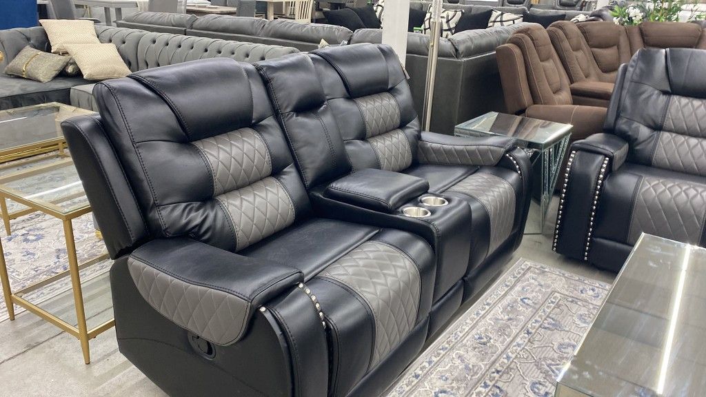 Two Tone Phoenix couch blk and gray / sofa Recliner Set Livingroom 🚚only 39 down payment $1849