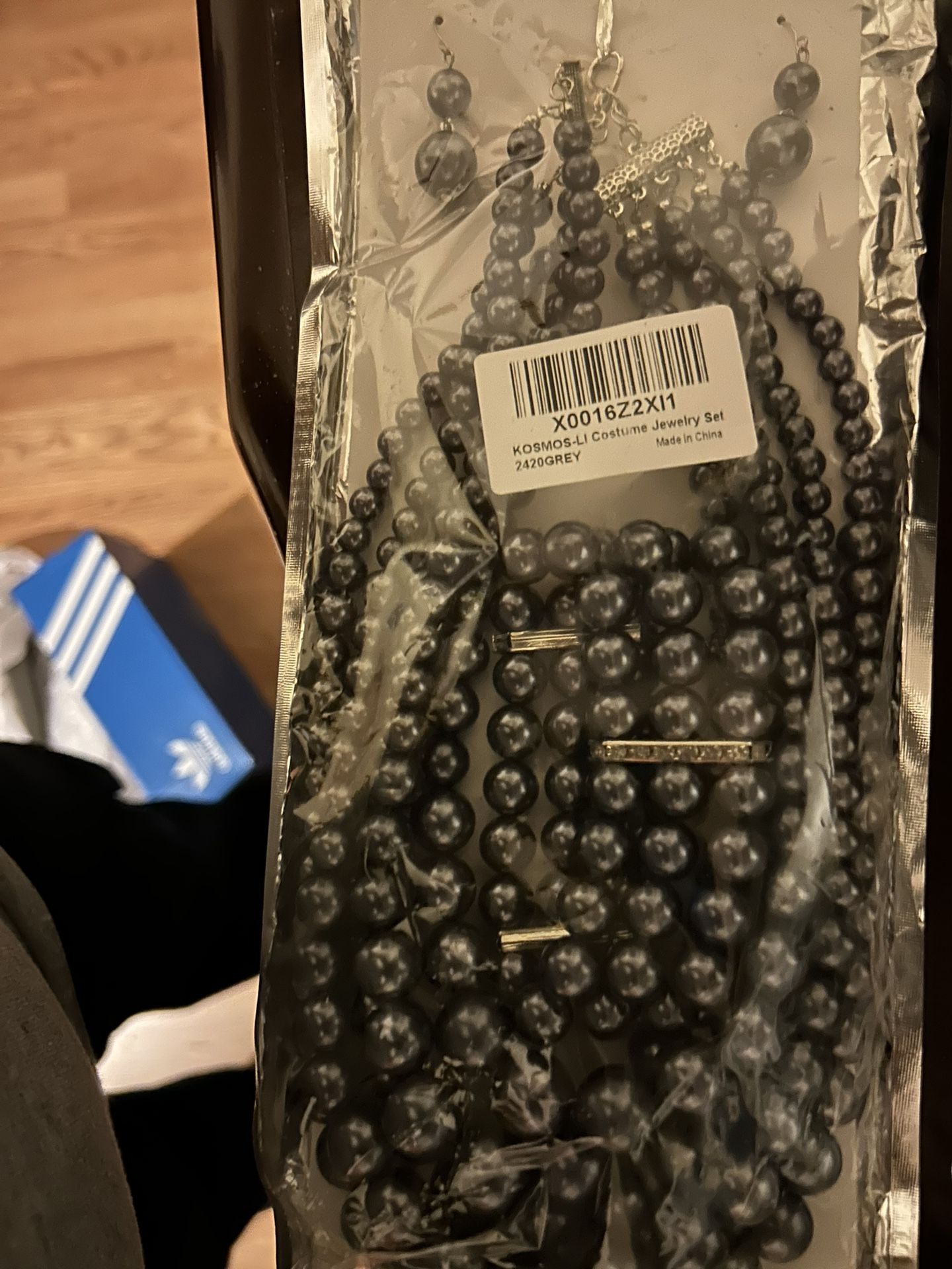 Womens gray jewelry set. Includes necklace, earrings, and bracelet