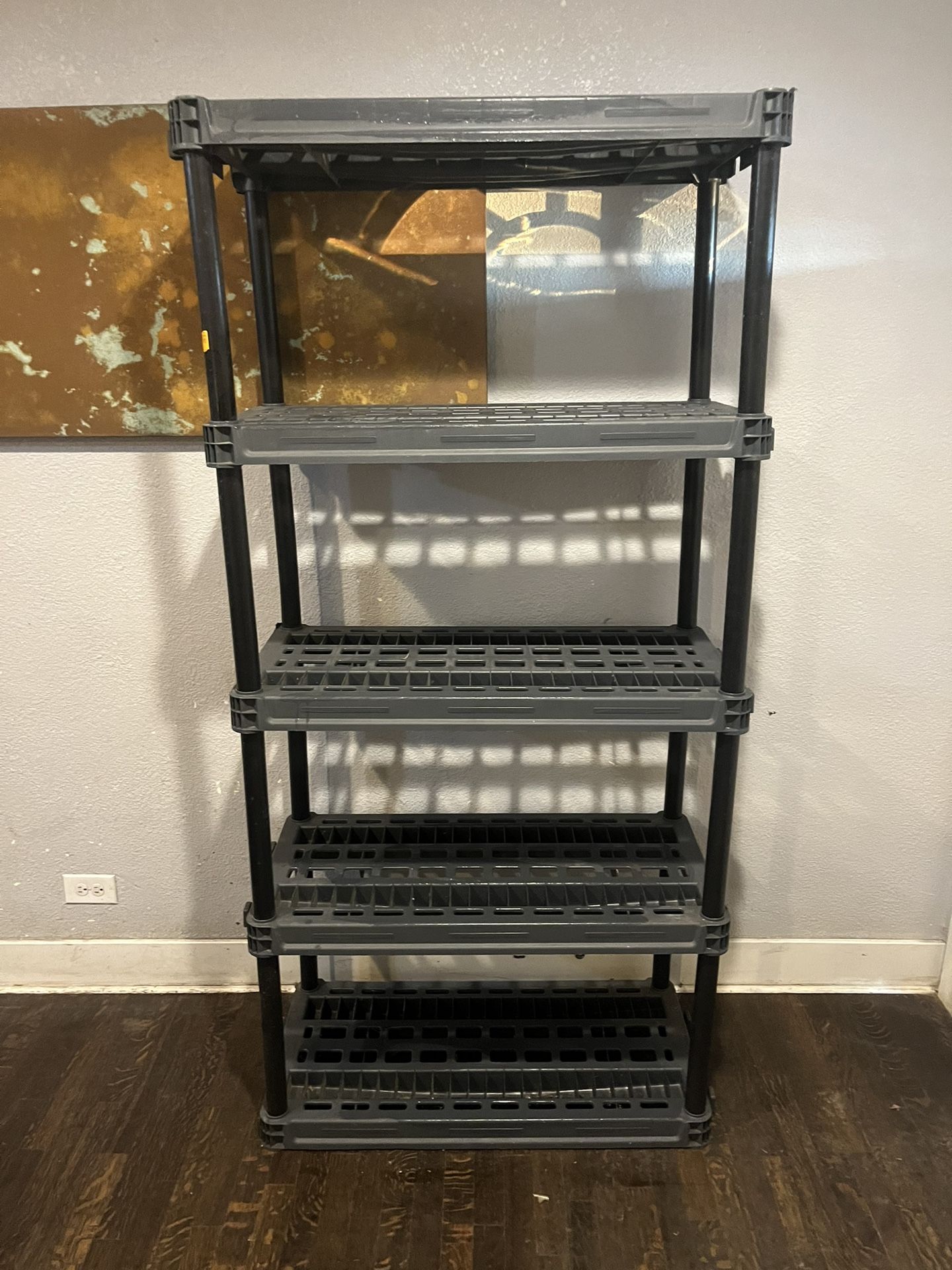 5-Shelf Unit Heavy Duty - Unit Capacity 750 lbs., Shelf Capacity 150 lbs. Easy assembly - no tools required Interlocking design feature to easily connect multiple units Ventilated shelf design prevents rust, mold, and mildew Ideal for garage, basement, laundry room and closet Dimensions: 36" L x 18" W x 73" H Made in the USA