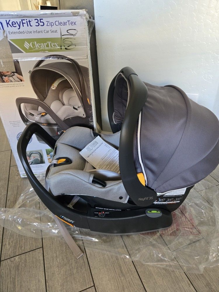 $100, new, PUO Manufactured date February 2025 Cross streets are 75th ave and Glendale Chicco KeyFit 35 Zip ClearTex Infant Car Seat and Base, Rear-Facing Seat for Infants 4-35 lbs., Zip-Open Privacy Shield, Compatible with Chicco Strollers | Ash/Grey