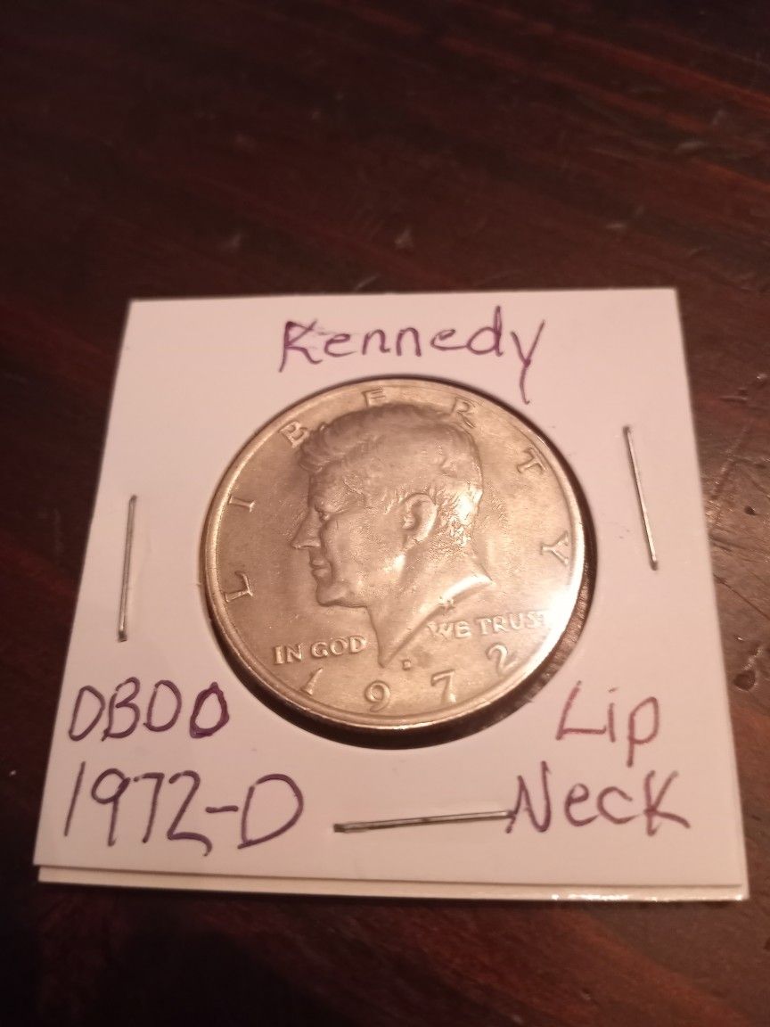 KENNEDY , ERROR COIN , 1972-D , MDO, DOUBLING ON LIP AND NECK. MACHINE DOUBLING OBVERSE.