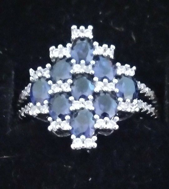 Sapphire rings with smaller stones. Both are set in Sterling Silver. One is a size 6 the other one is a size 8