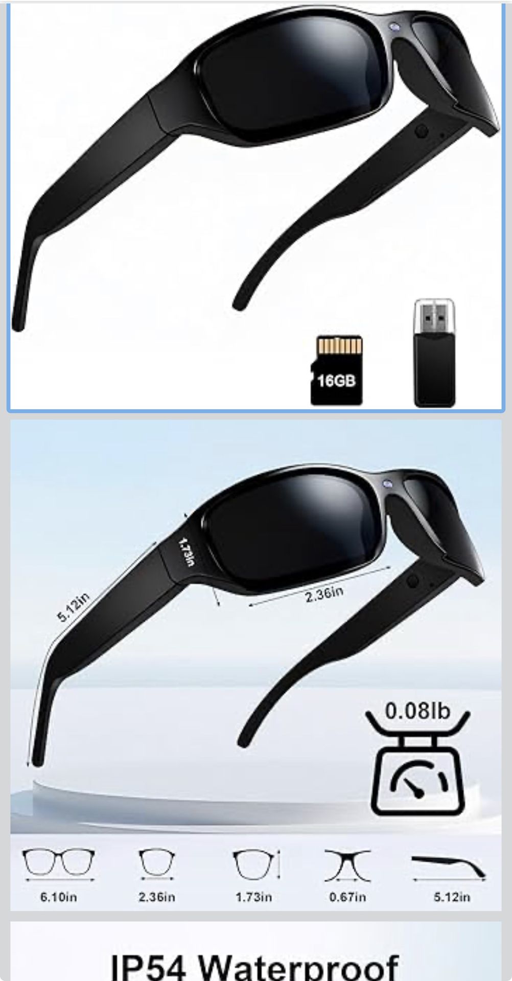 Brand new, unopened Smart Sunglasses Camera Outdoor Sports Action Camera Glasses Full HD 1080P Video Camera Glasses UV Protection Polarized Sunglasses mit 16GB Micro SD Card, Card Reader for Hiking, Cycling, Climbing