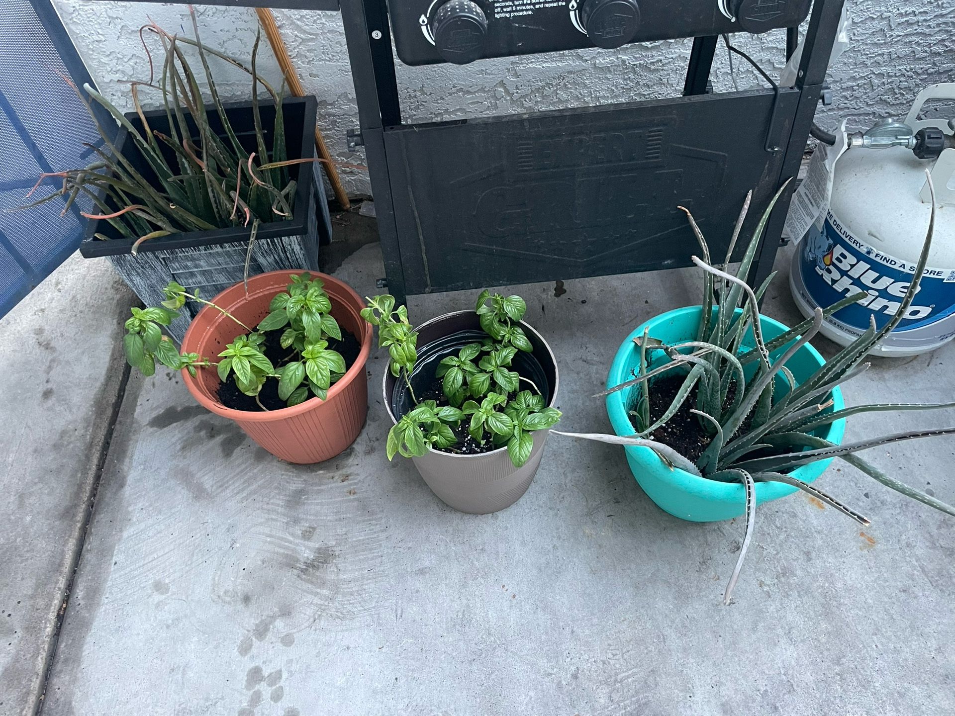 Recently chopped my outdoor aloe plant and have many cuttings for sale . These do Not come in planters , sold by the individual plant . Aloe Small plant 5$ Medium plant 8$ Large 10$ Large / xl established 15$ Basil 5$ (these come in clusters , established ) Pickup best of the west shopping center ( lake mead and rainbow) Delivery would be an extra charge depending on location .