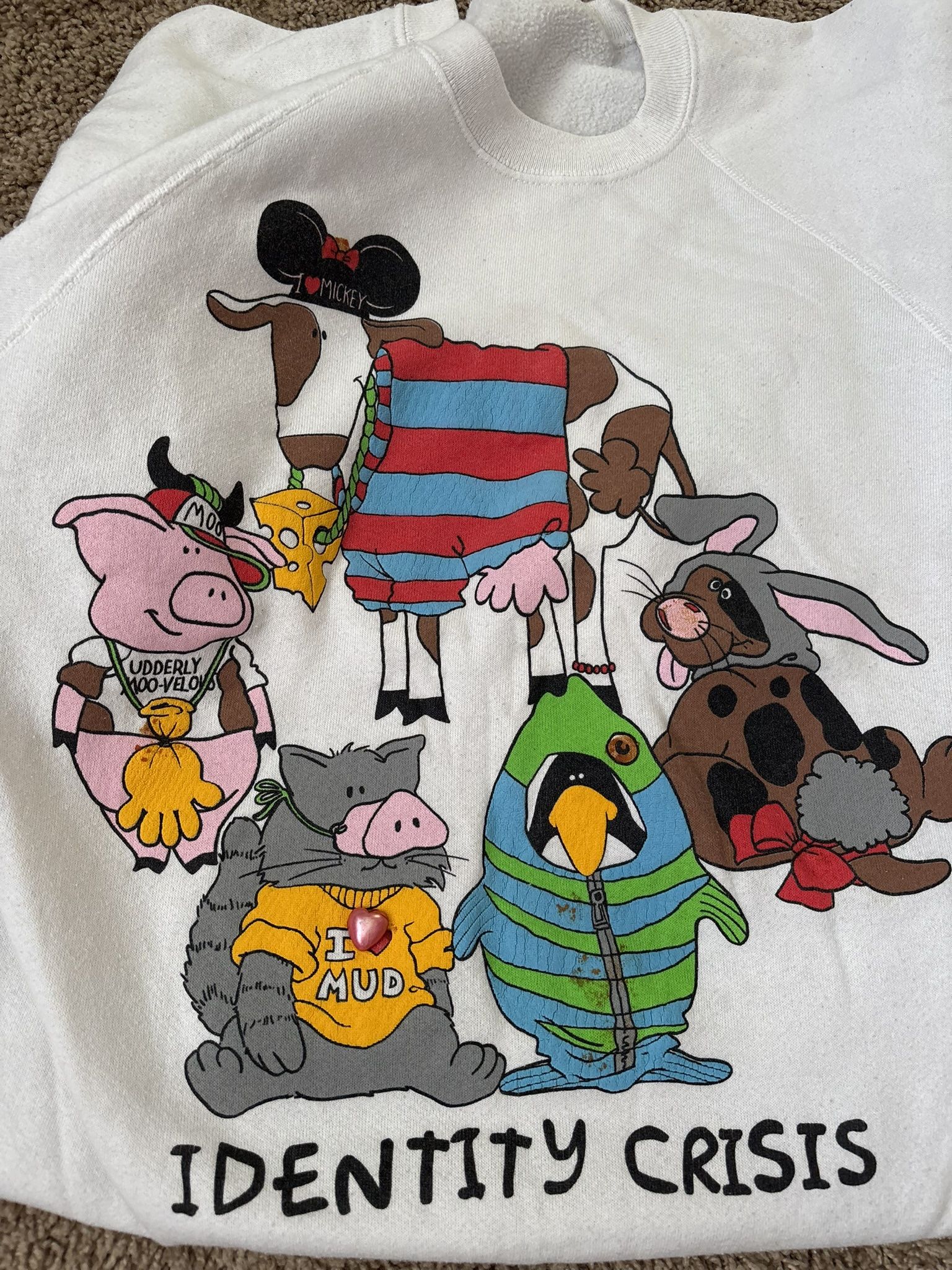 Vintage Identity Crisis White Crewneck – XL (Fits Like L)