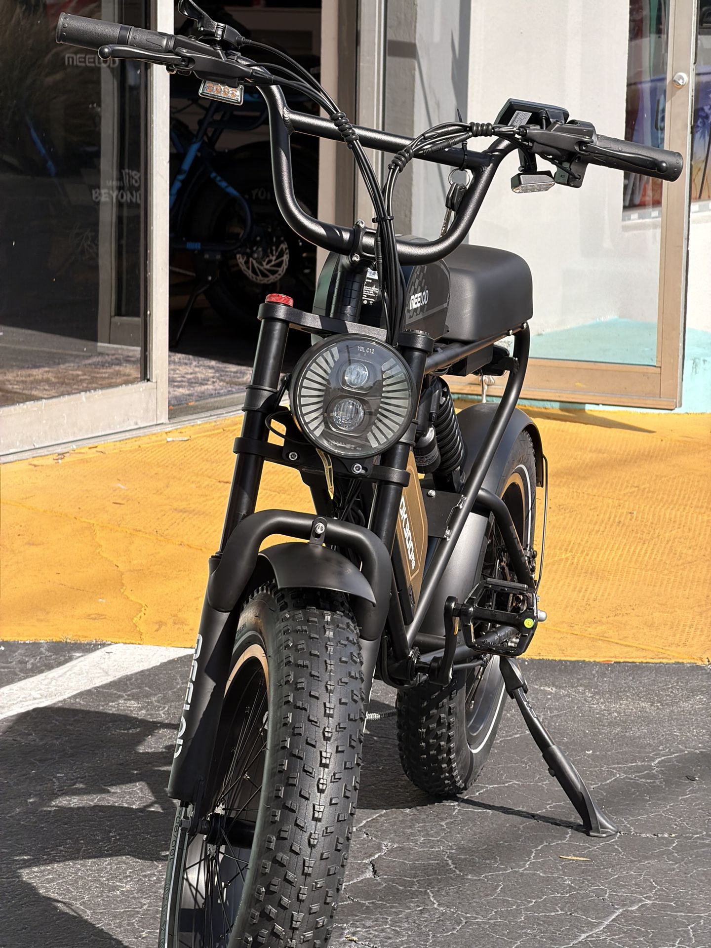The Meelod DK300 Pro is a retro‑styled, moped‑inspired electric bike built for riders who want power, comfort, and long range in a rugged frame. It combines a 1200W peak motor, dual‑battery capability, and full suspension, making it suitable for both daily commuting and light off‑road use. Rogan E-Bikes 3825 Tyrone blvd. N. St. Petersburg (contact info removed) 30740 Wesley Chapel blvd. Wesley Chapel (contact info removed)