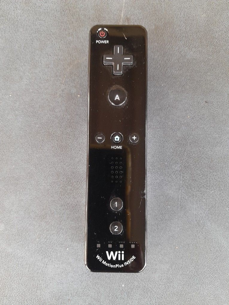 For sale, a pre-owned black & white Nintendo Wii wireless controller with Motion Plus Inside in working condition that comes as shown (see photos). This controller operates on 2-AA batteries (not included). If interested, you can message me through OfferUp, and I will get back to you. Thank you for looking at my item!