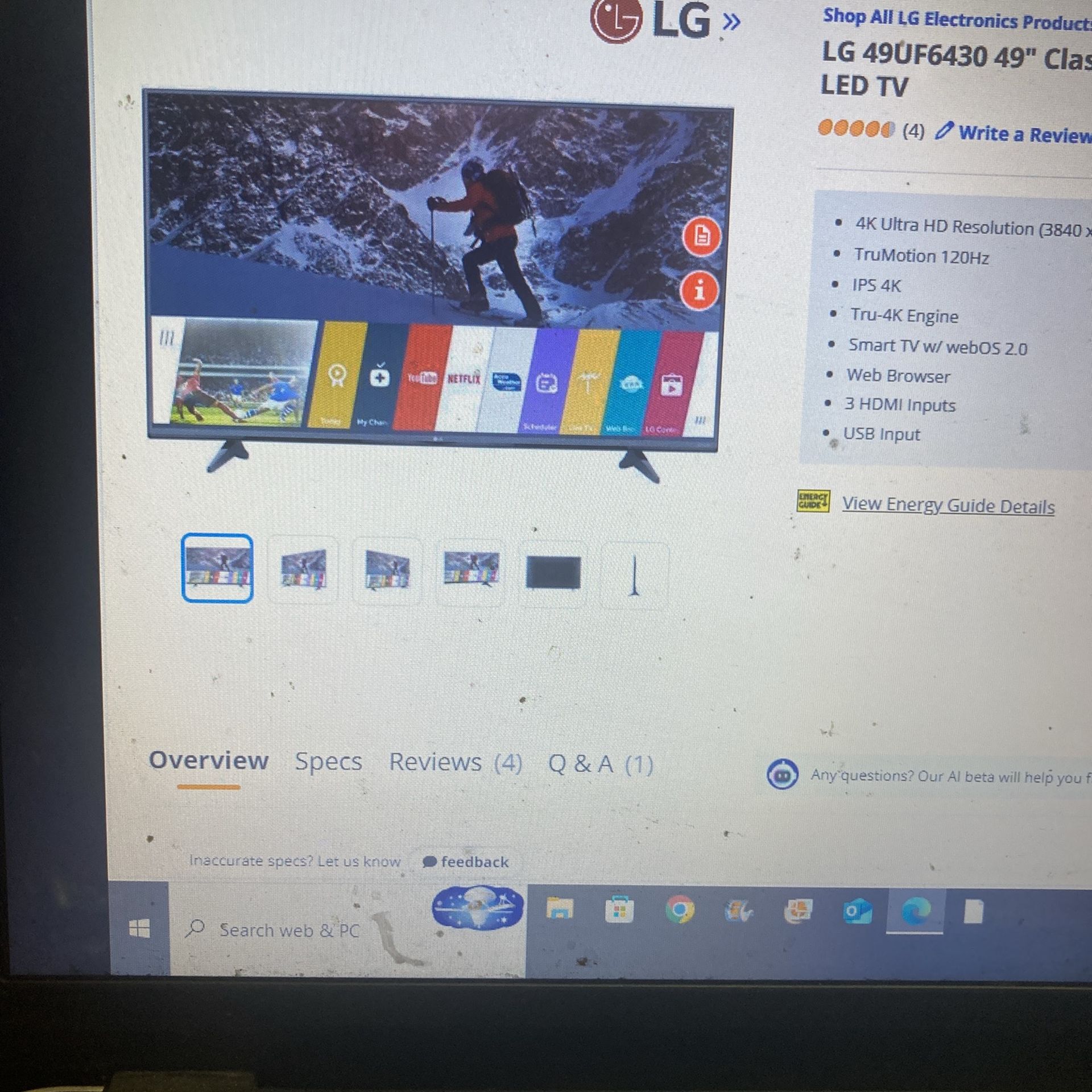LG 49 Inch Smart Tv ; 4K Ultra Hd Smart Tv ! Lots Of Streaming Apps