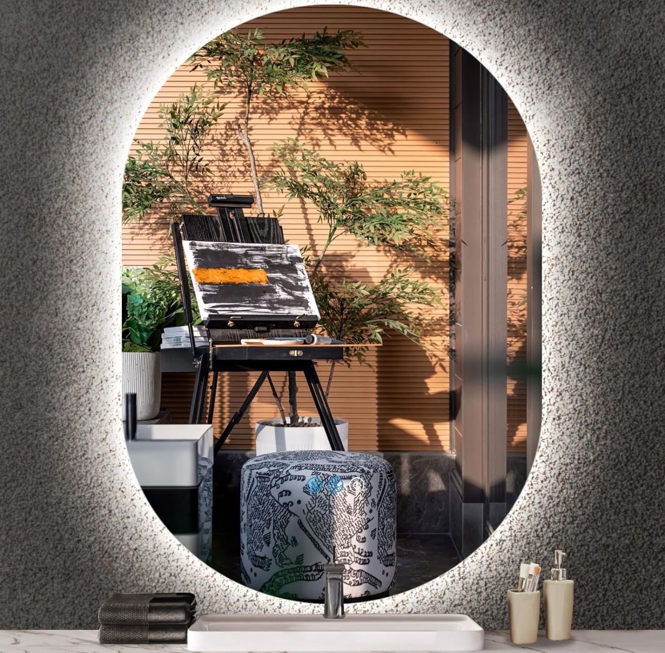 Pick up only New in box #8061 THEKLA 30 x 40 Inch Oval Lighted Vanity Mirror with Lights Backlit Smart Memory 3 Color Dimmable AntiFog 40" Frameless LED Oval Backlit Mirror for Bathroom Salon Makeup Wall Vertical/Horizontal Mount