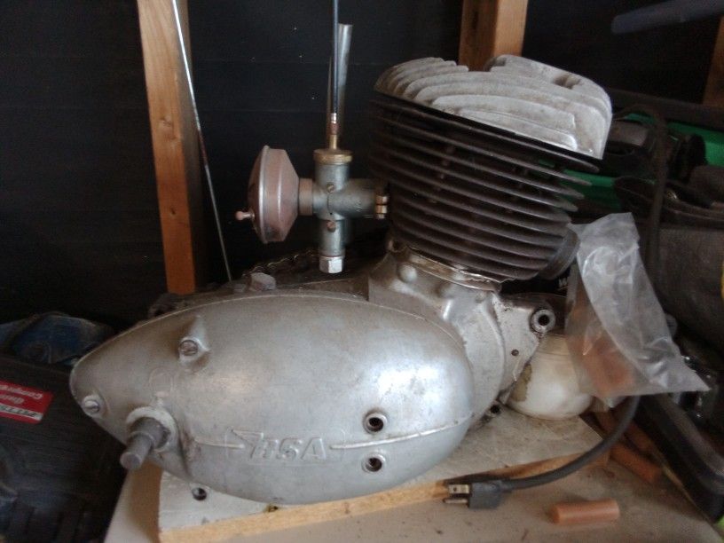 This BSA was converted to flat track and did well. A mechanics dream. So many parts with extras. Engine, chain, front forks and handle bars. Frame, 2 gas tanks, 2 seats, front fender and rear tire...and more. This bike needs someone to bring it back to its full potential. Unfortunately I am not the guy.If you're upto the task and have the skill and know-how this bike is for you.