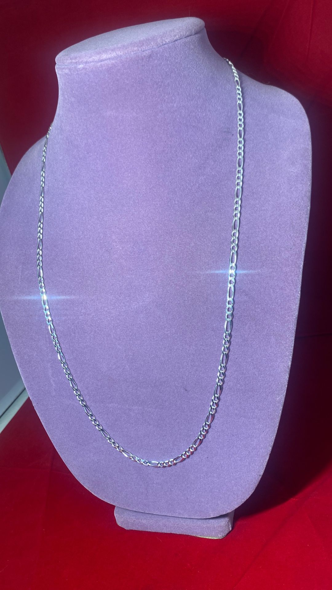 4mm 28” 925 Italian Sterling Silver Figaro Necklace