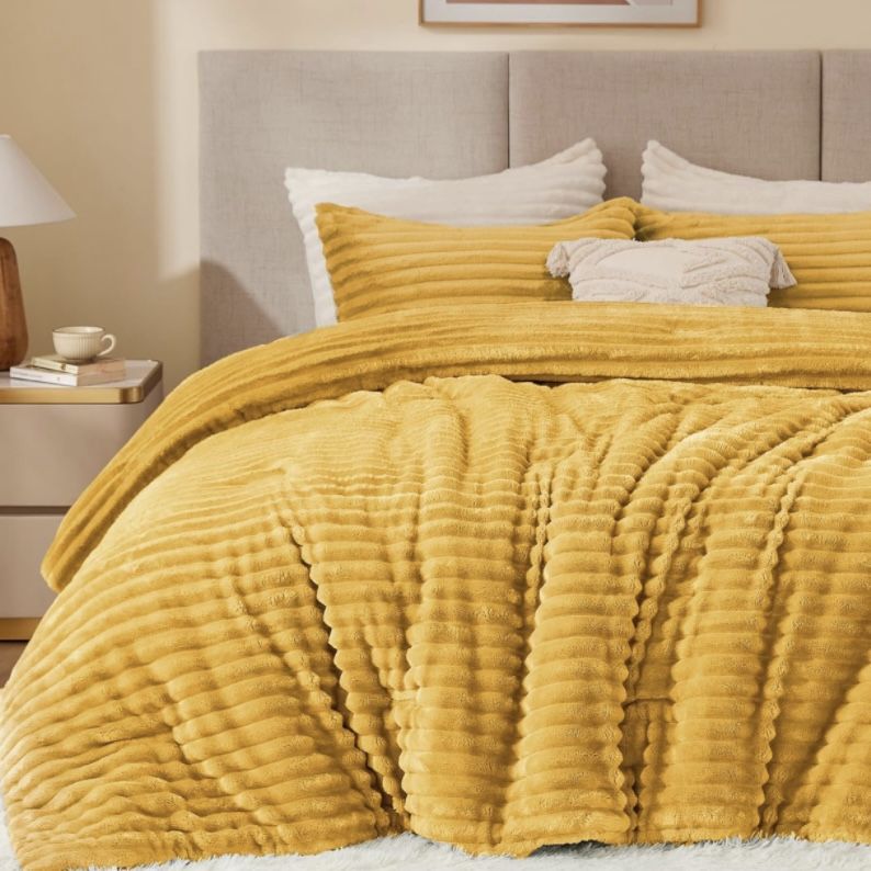 Fleece Comforter Set -Super Soft & Warm Fluffy King Mustard Yellow
