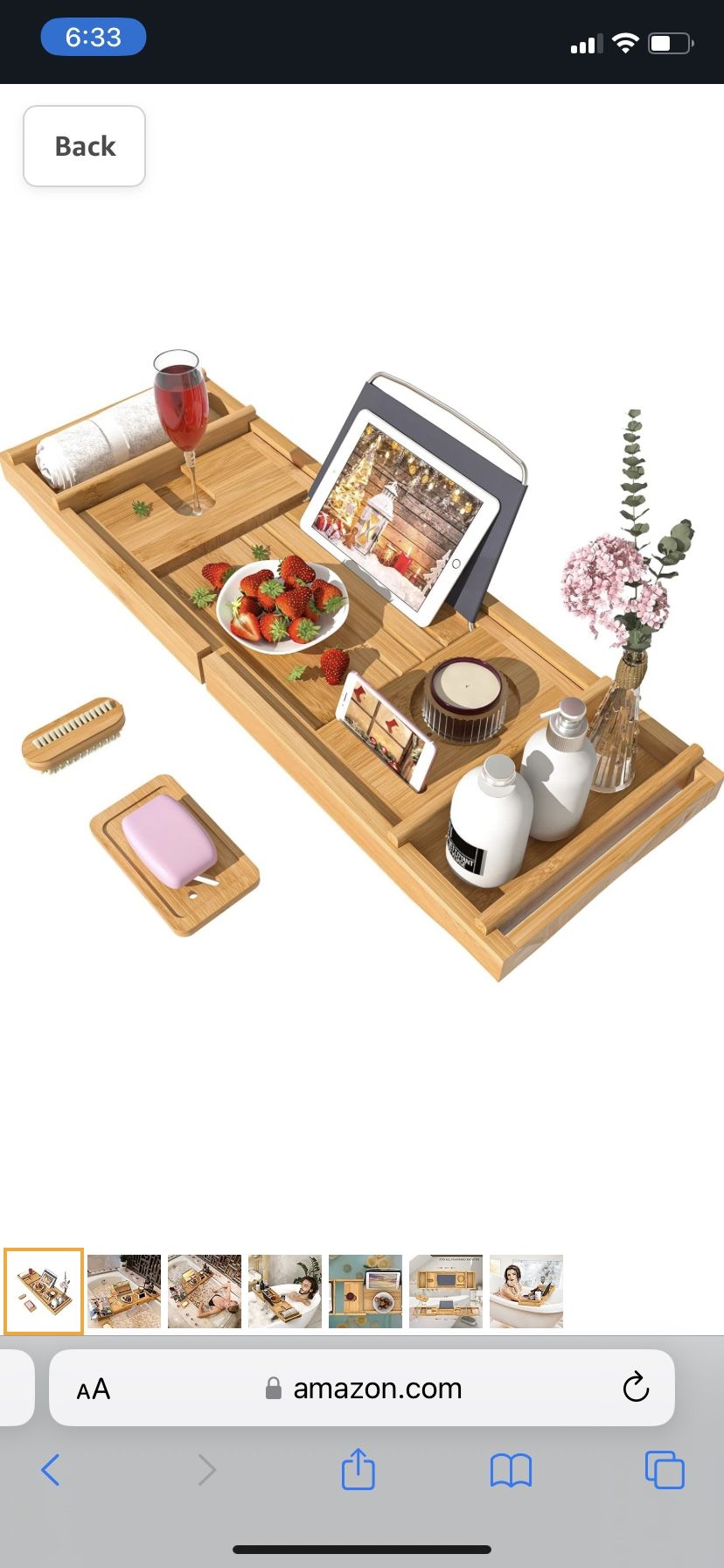 * item new in box * GIVE YOURSELF a BREAK: When you're taking a bath with Bamfan bathtub tray, you can relax and indulge yourself under the extremely comfortable environment ; spoil yourselves in a splendid bath, it is a necessity of your stressful life NOBLE COLOR: The bath tray frame is full of rich brown which is classic and elegant; adds luxurious appeal to your antique or modern tub MULTIFUNCTIONAL COMPONENT: With the many compartments bath caddy tray that easy reach to lean over to grab your soap, shampoo, etc. Relieve your anxiety ADJUSTABLE and FLEXIBLE: The bathtub tray caddy is adjustable that can expand 29.4 inches to 44.2 inches; fits all standard roman bathtub;you’ll definitely enjoy it Color Natural Material Bamboo Please check out my other items. Thank you