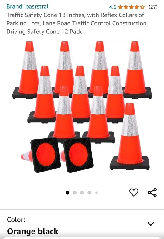 Traffic Safety Cone 18 Inches, with Reflex Collars of Parking Lots, Lane Road Traffic Control Construction Driving Safety Cone 12 Pack