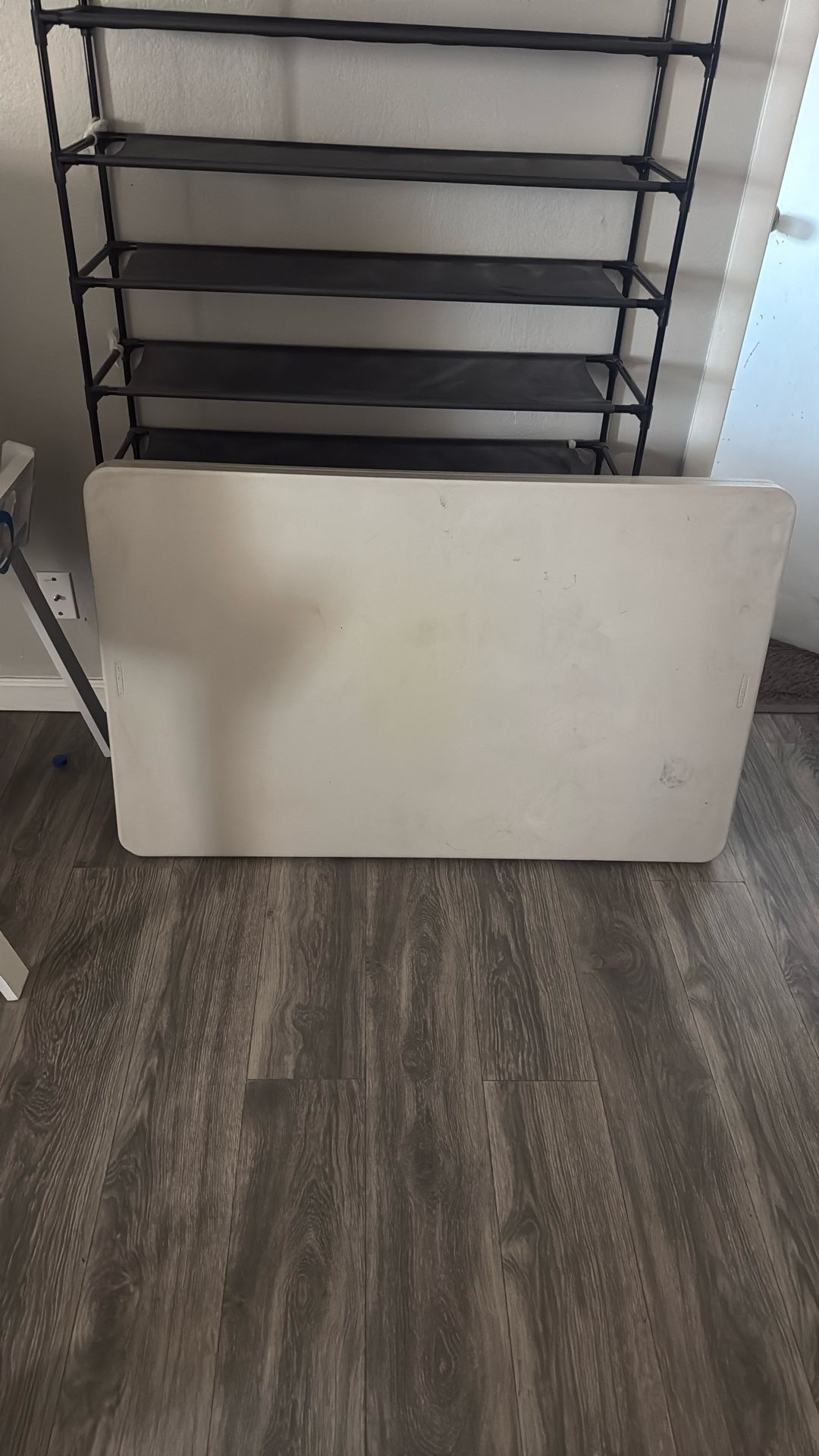 Still in new conditions. 4 feet by 2feet Works for picnics, celebrations, parties, buffet lol. I also have a smaller table for $15 is 2 by 2
