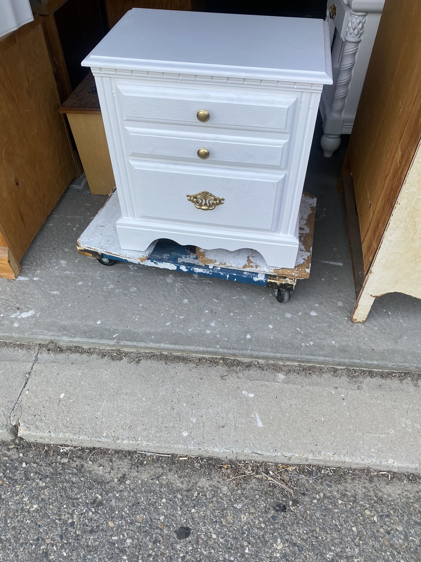 White 2 drawer broyhill solid wood nightstand. H. 25. X l 23. X d 15 newly painted