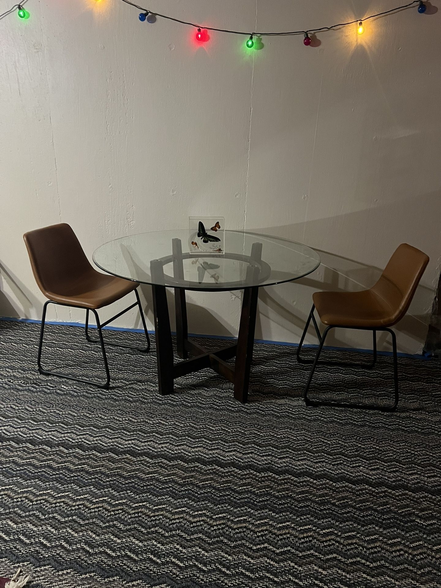Beautiful Dining Glass Table With Two Chairs Very Confort , 45 Inches Round