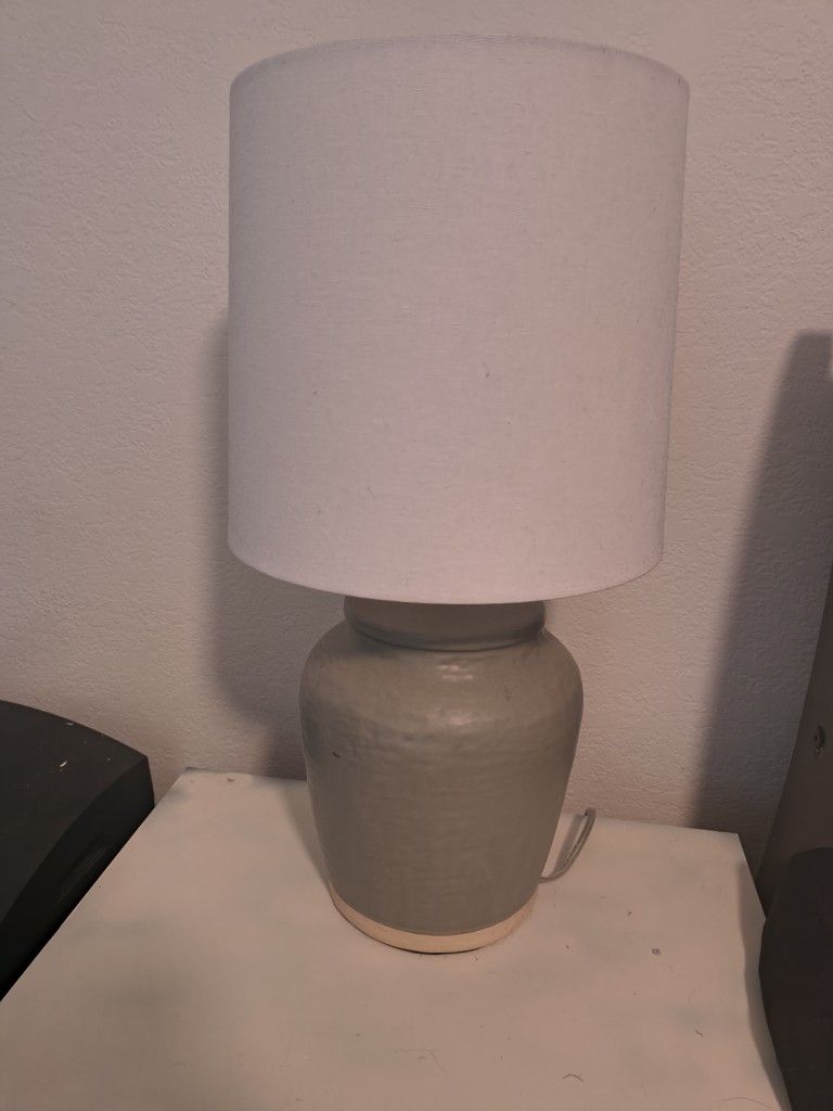 Lightbulbs included, large ceramic table lamp. The color of the lamps is like a grayish sage with cream color block detail on the bottom. I believe the brand may be threshold x studio McGee from target. $40 each or $75 for both