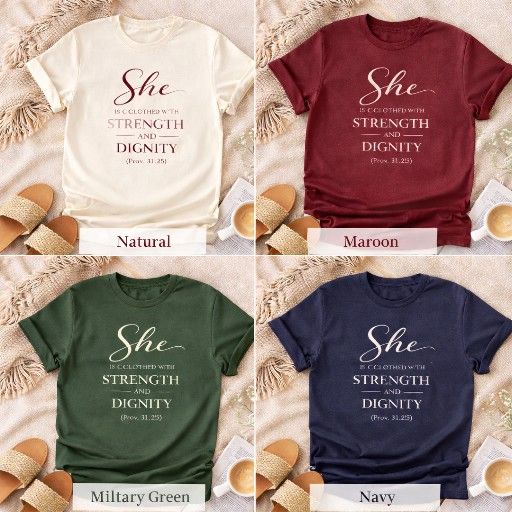 PLEASE READ: This is an online, made-to-order item. Not available for local pickup. Ships directly to you. Soft, elegant Christian women’s t-shirt inspired by Proverbs 31. Designed to reflect strength, dignity, and faith without being loud or flashy. ✔ Super soft fabric ✔ Flattering women’s fit ✔ Multiple colors available ✔ Sizes S–5xl 📦 Ships to your door 🛒 Order securely through Etsy 👉 Message me for the link