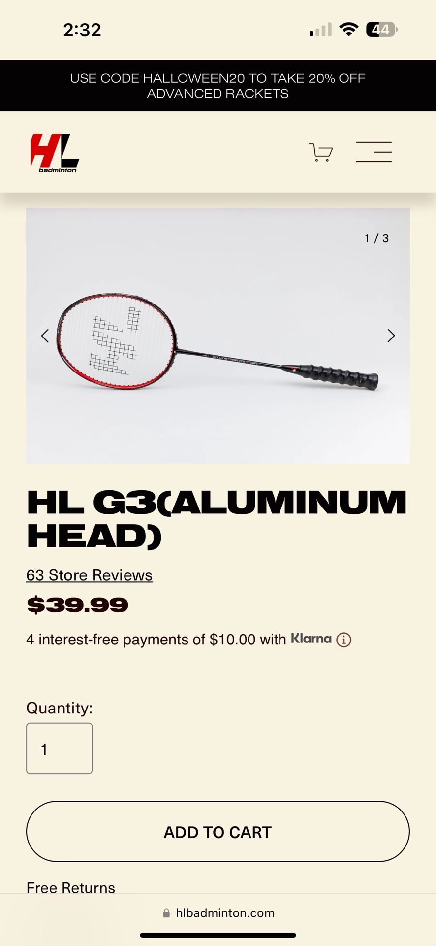 Tech Specs 7000 Series Aluminum Head - lightweight aluminum with high-tension capabilities 100% Graphite Shaft - medium flex graphite fused to aluminum head 86 grams(unstrung) - mid to heavy-weight racket for entry-level players 24 lbs max tension - great for players just starting out Balanced Weight - striking a balance between power and quickness Power Grip - our standard bumpy grip with cushion Prestrung at 22 lbs - instant playability Full case cover included with purchase Player Type The HL G3 was designed with novice players in mind. The combination of a graphite shaft with an aluminum head means that you’ll get all the power without the high price tag. Practically brand new it comes with the cover to protect.