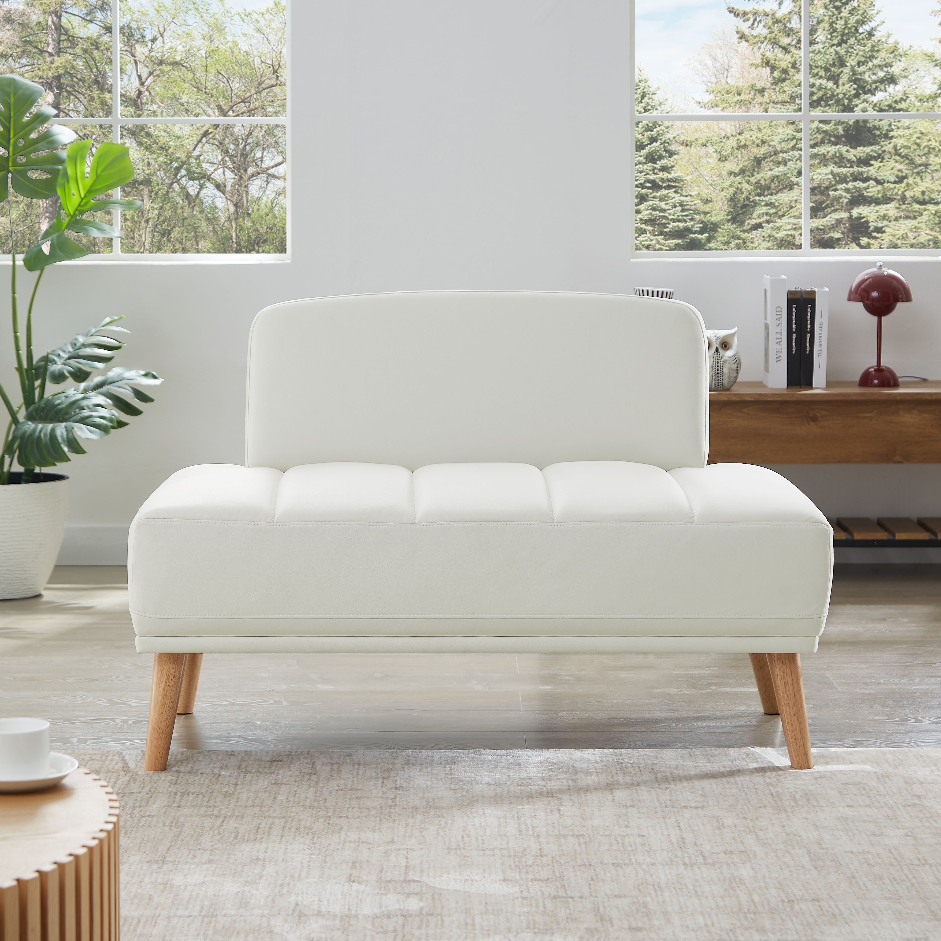 45Inch Width Modern End of Bed Bench, Leathaire Fabric Upholstered 2 Seater Sofa Couch Entryway Ottoman Bench, Stool Footrest Window Bench with Gold Wood Legs for Bedroom, Living Room,beige Length (in.): 46.10 Width (in.): 24.80 Height (in.): 11.00 Weight (lbs.): 48.50 This bed bench is unique style in the market, truly one of a kind from our design department. It is covered with leathaire fabric, kind of polyester but with leather texture. Soft & smooth fabric enhances the skin-friendly feel. Made of a solid wood frame fitted with “S” springs, this sofa achieves perfect balance of structure and comfort. The interior of this sofa is lined with dual-density sponge that adds supple support. It provides with ultimate comfort, non-recycled and non-toxic foam for natural breathability and safety. Solid wood foot pads not only make the bench stable but also protect floor from scratching. Comfortable modular sofa. This bench is perfect to place at the end of bed,entryway,by the window,hallway,foyer or extra seat in the living room,bedroom,dressing room etc. If you buy 2, you will have free combination options for your desired sofa size & shape. Packed with space-saving carton box. Sofa is easy to install with instruction manual. W2865P225574