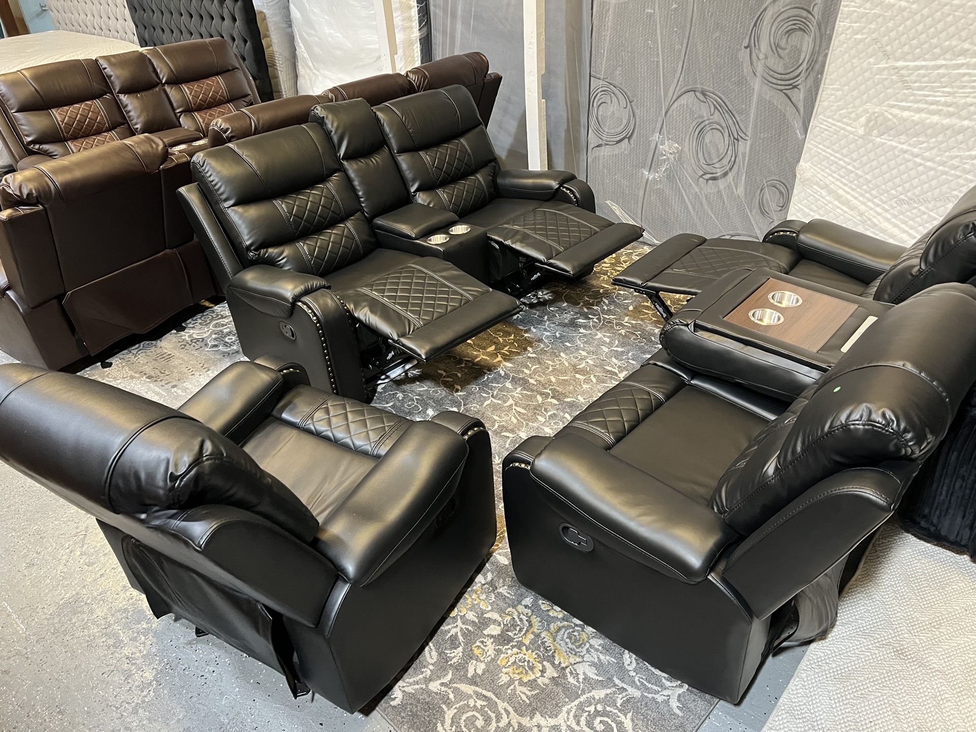 BRAND NEW 3 piece reclining set brand new in the box 📦 Set includes: - 5 manual recliners - drop down sofa table - 2 stainless cup holders - power outlets and usb port - rocking recliner chair Come by and check us out: Empire Appliances & Funriture                              *6340 North Fwy, HoustonTX 77076* Business hours: Monday - Saturday: 10AM-7PM                  Sunday:                12PM-6PM
