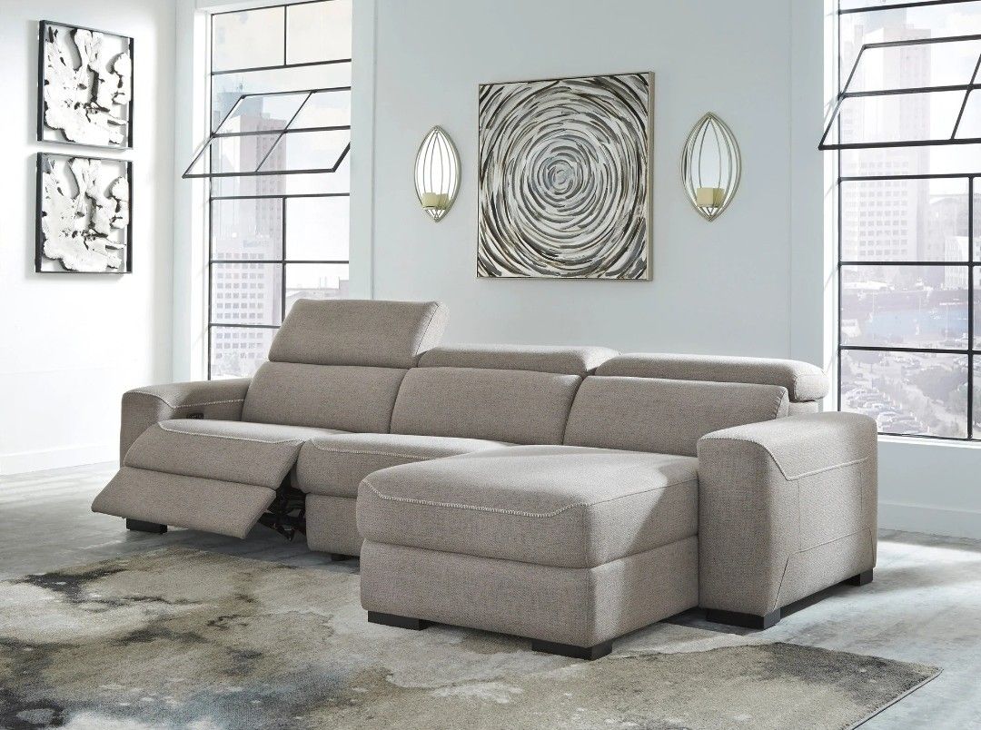 Mabton Gray 3-Piece Raf Dual Power Reclining Sectional