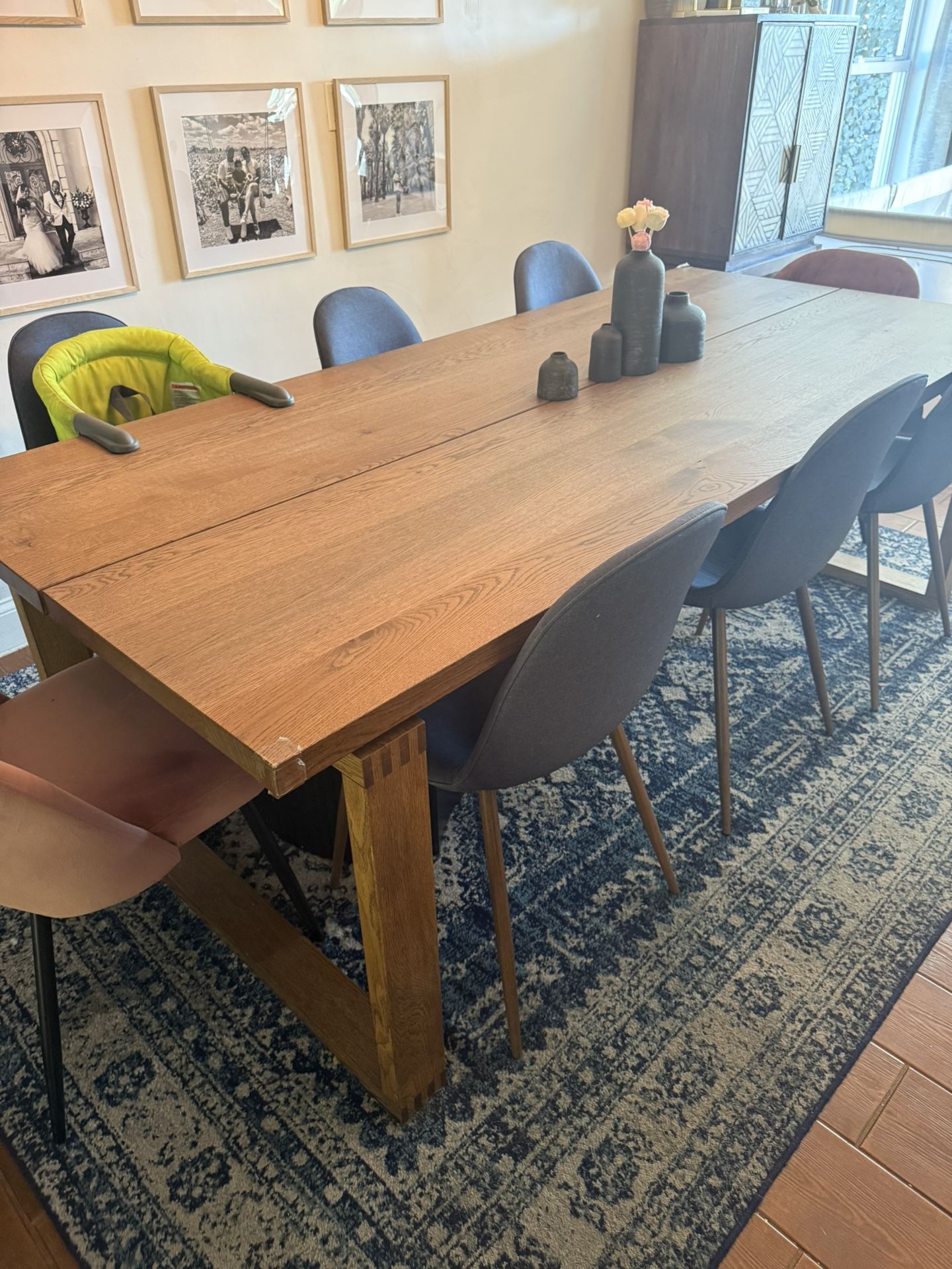 Large dining table, great condition. Has corner protectors but can be removed. 2 corners are slightly chewed up but can be buffed / sanded down or covered with protectors. Original price of table $900. Size: 86 5/8x39 3/8