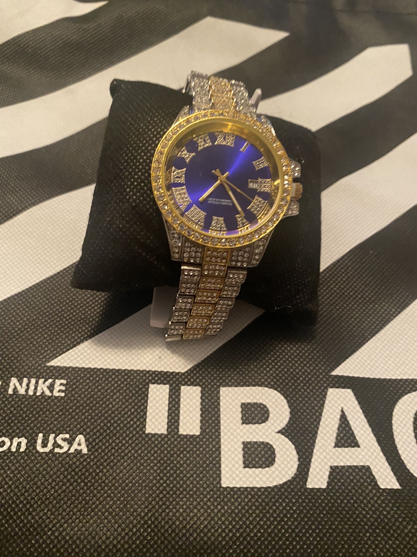 Blue Bezel Iced Out Watch